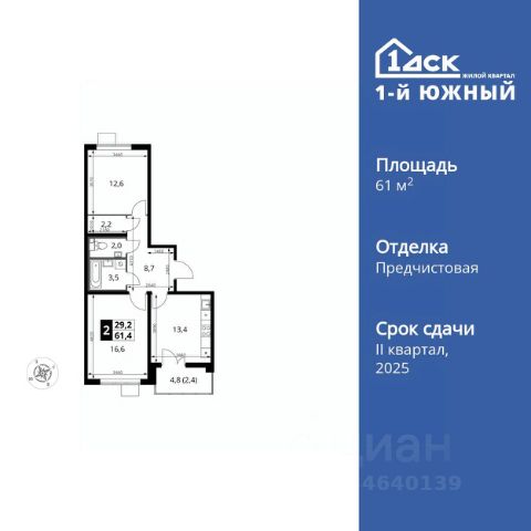 Прямая продажа от застройщика. Продаётся 2-комнатная квартира общей площадью 61 м² с предчистовой отделкой в ЖК "У реки. Эко Видное 2.0" на 15-м этаже корпуса Нестеров. Все корпуса введены в эксплуатацию. Выдача ключей - I кв. 2025г. Жилой комплекс "У реки" - уникальный проект комфорт-класса, в котором применяются стандарты строительства и сервиса MR, характерные для проектов девелопера бизнес и премиум-классов. 17-этажный корпус "Нестеров" расположится на живописном берегу реки Купелинка. Из его квартир откроются захватывающие виды на реку и лес на её противоположном берегу. О проекте: - 5 корпусов переменной этажности; - 8 км от МКАД, 30 минут до метро "Домодедовская", в 2025 года запланировано открытие станции МЦД-5 (дорога по Павелецкого вокзала займёт 30 минут); - Безопасные дворы с детскими и спортивными площадками для разных возрастов; - Собственная набережная с променадом, местами для пикников и рыбалки; - Два детских сада и школа на территории; - Развитая инфраструктура района; - Отделка MR Base (white box) Компания MR предлагает своим клиентам специальные условия приобретения квартир в рамках программ ипотечного кредитования от банков-партнеров.