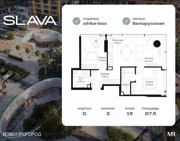 Квартиры премиум-класса в жилом комплексе SLAVA у м. "Белорусская" от застройщика. В продаже 2-комнатная квартира площадью 67.50 м² на 15-м этаже корпуса G. Новый современный жилой комплекс премиум-класса SLAVA расположен в той части центра, где традиция соединяется с прогрессивными городскими тенденциями. Здесь историческая Москва встречается с передовым миром. Популярные театры и старинные церкви соседствуют с современным деловым кварталом и гастрономическим кластером Депо. SLAVA находится всего в 5 мин. пешком от м. "Белорусская", по-новому открывая Ленинградский проспект. Проект был разработан легендарным архитектором Хельмутом Яном, основателем чикагского архитектурного бюро Jahn. Его работы отмечены множеством наград и реализованы в мегаполисах по всему миру. По замыслу архитекторов, жилой комплекс образуют четыре высотные башни, соединенные одноэтажным стилобатом "Хронограф". Здесь, на первом уровне, открытые и закрытые общественные пространства: небольшие сады, места для встреч и отдыха, кафе, рестораны, магазины, спортивный центр и даже выставочное пространство. Важнейшей особенностью пространства является его всесезонность: благодаря правильной организации, ландшафтному дизайну, инженерной инфраструктуре здесь будет уютно и в жару, и в xолод, и в ненастье. На втором уровне стилобата расположится приватный парк для жильцов. Особенности комплекса: - Идеальное расположение в престижной части Москвы (10 мин. от Кремля) - Панорамное остекление - Подземный паркинг с дизайнерской отделкой - Современные инженерные системы - Продуманная внутренняя инфраструктура - Приватный сад 7700 кв.м. Расположение комплекса: - 5 минут до станции метро "Белорусская" - 3 минуты до ТТК - 8 минут до "Садового кольца" Компания MR предлагает своим клиентам специальные условия приобретения квартир в рамках программ ипотечного кредитования от банков-партнеров.