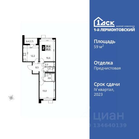 Прямая продажа от застройщика! Жилой Комплекс класса Комфорт Плюс. Продаётся 2-к квартира номер 868 общей площадью 59.3 кв.м. на 15-м этаже 25 этажного здания. Отделка Whitebox. Цена с учётом скидки. Особенности квартиры: - Просторная спальня, в которой можно разместить большую кровать. - Распашная планировка - отличное сочетание удобства и свободы. - Раздельный санузел - больше удобства для всех членов семьи. - Линейная кухня - функциональность и практичность в одном решении. - Ниша под шкаф - компактное и удобное место для вещей. - Кладовая - дополнительное пространство для хранения. - Лоджия - уютное место для отдыха и тишины. Квартира с предчистовой отделкой (White box). Вам не придется заниматься черновыми и трудоёмкими работы, а чистовую отделку и дизайн - сделайте на свой вкус. Информация о комплексе: Ощущение уютного дома должно начинаться с подъезда. Мы постарались предусмотреть все нюансы, чтобы наши лифты отвечали самым строгим современным требованиям. Двор без машин, закрытое, безопасное, охраняемое место с удобным доступом для вашего авто, более чистый воздух и гарантированное место для стоянки - и это далеко не преимущества наличия подземного паркинга. А наличие кладовых позволит вам поддерживать идеальный порядок и уют в вашей квартире! "1-й Лермонтовский" расположился недалеко от уже сложившегося зеленого окружения - Люберецкого парка и Жулебинского лесопарка, переходящего в природно - исторический парк "Кузьминки". Если вы предпочитаете активный семейный отдых на свежем воздухе - в округе мест для него предостаточно. С востока он граничит со столичным районом Некрасовка. С северной стороны - с развитым современным микрорайоном "Красная Горка". Удачное расположение дарит жильцам возможность передвижения как на своем автомобиле, так и на общественном транспорте. Транспортная доступность: В шаговой доступности ж/д станция "Люберцы-1". 5 минут на автомобиле до станций метро "Некрасовка", "Котельники", "Лермонтовский проспект" Внутренняя инфраструктура: Свободно перемещайтесь по внутренней территории в безбарьерной среде! На территории комплекса созданы все условия как для активного образа жизни, так и для спокойного времяпрепровождения: - игровые площадки для детей разного возраста. - площадки воркаута, спортивные комплексы с зонами для детского и взрослого спорта. - зоны отдыха с пешеходными дорожками и аллеями. Также, к вашим услугам: 4 общеобразовательные школы, 7 детских садов, спортивные и танцевальные, школы, поликлиники, множество магазинов и супер-маркетов, включая Ашан и несколько крупных ТЦ в шаговой доступности.