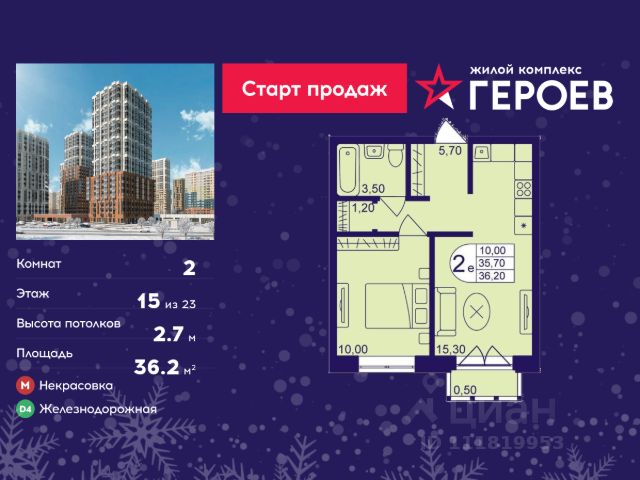 Продаётся 2-комнатная квартира в формате евро 36.00 кв. м. в жилом комплексе "Героев" в Балашихе, Железнодорожный. Квартира расположена на 15 этаже 610 корпуса. В наличии квартиры с отделкой. Всего 40 минут до центра Москвы. При покупке квартиры в сданном доме ключи выдаются сразу! Жилой квартал "Героев" - это уютный проект для семей с детьми. В квартале созданы все условия для досуга всех возрастов: игровые и спортивные площадки, места для отдыха и прогулочные зоны. За 15 минут можно дойти от дома до Ольгинского лесопарка, популярного места для отдыха на свежем воздухе. На территории жилого комплекса уже открыт детский сад на 250 мест и началось строительство еще одного - для 220 малышей, а также школы для 1320 учеников. Рядом работают магазины, кафе, супермаркеты, пункты выдачи. Преимущества: • В уютных светлых квартирах с просторными кухнями-гостиными удобно встречать гостей и проводить время наедине друг с другом. • Благодаря увеличенному остеклению в комнатах много света. • Квартиры продаются с отделкой, можно заселяться сразу после получения ключей.