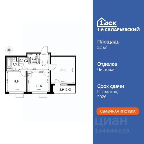Продаётся 2-комн. квартира площадью 52 кв.м на 15 этаже 16 этажного дома (Корпус 20, Секция 2) проекта ПИК Саларьево парк. Светлый просторный подъезд на уровне земли, функциональная планировка, большие окна, c отделкой. Жилой район "Саларьево парк" расположен в Новой Москве, в четырёх километрах от МКАД по Киевскому шоссе. Две станции метро: "Саларьево" и "Филатов луг", — находятся в пешей доступности от проекта. Дойти до них можно за 510 минут. В квартале уже создана качественная среда, где есть абсолютно всё для полноценной жизни, работы и отдыха. Благодаря удобному расположению проекта всё важное будет рядом: детские сады, школы, кафе и рестораны, шопинг в торговых центрах, фитнес и даже аэропорт. Все корпуса в квартале гармонично сочетаются, образуя единую городскую среду. Между собой их объединяет невысокая этажность и натуральная цветовая гамма. Здесь приятно гулять и проводить время на улице всей семьёй. В "Саларьево парке" создана уникальная образовательная среда, включающая в себя шесть школ, рассчитанных на 6 250 учеников. Две из них уже открыты, их посещает 2 300 детей. Также на территории "Саларьево парка" находится 12 детских садов, один из которых с бассейном. Сейчас уже открыты 7 садов. В "Саларьево парке" открыта уникальная игровая площадка — PlayHub "Оригами". Здесь есть ручей, горка-труба и рельефные холмы. Взрослые смогут отдохнуть в уютном кафе, пока дети играют. Также на территории проекта есть SportHub — большая спортивная зона, разделённая по интересам и возрастам. Здесь можно заниматься разными видами спорта: футболом, баскетболом, волейболом и стритболом. Зимой центральную часть площадки превращают в каток. Во дворах-парках жилого квартала есть места для отдыха, детские и спортивные площадки. На первых этажах домов расположены магазины, кафе и полезные сервисы. Также вблизи проекта есть несколько масштабных торговых центров. До ТЦ "Саларис" пять минут пешком, до "Рио", Metro Cash & Carry и "Леруа Мерлен" — пять минут на автомобиле. Артикул 946978 (Застройщик ООО "Специализированный Застройщик "Тирон")