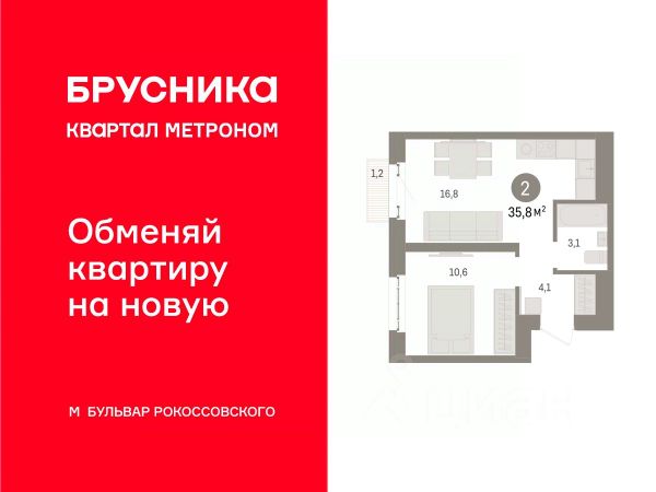 • ✅ Минимальная площадь: 35,8 м²
