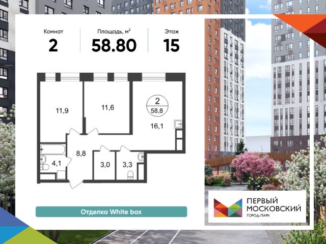 • ✓ В базе Циан 44 2-комнатных квартир на 15 этаже в поселении Московский в Москве