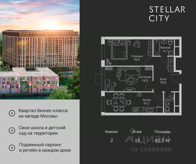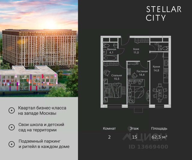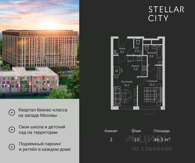 Продается просторная двухкомнатная квартира площадью 68,7 м² в корпусе "Созидание" клубного дома "Кутузов Сити". Планировка квартиры продумана до мелочей и позволяет создать комфортное пространство для жизни. Кухня-столовая — это сердце дома, где удобно готовить и вместе собираться за обеденным столом. Здесь достаточно места и для приготовления еды, и для общения с близкими, и для атмосферных встреч с друзьями. В квартире две спальни, выделенные в отдельный блок. Рядом с ними — просторная ванная комната. Такое расположение спального блока обеспечивает комфорт и приватность для всех членов семьи. В коридоре предусмотрена отдельная зона для гардеробной, а также гостевой санузел, который который при желании можно использовать как прачечную. О проекте: "Кутузов Сити" — клубный дом на 220 квартир, разработанный совместно с бюро Atrium и Oleg Klodt Architecture & Design. Проект строится в престижном Западном административном округе Москвы, всего в нескольких минутах ходьбы от Кутузовского проспекта. Закрытая территория, приватный двор, подземный паркинг и стильные лобби создают атмосферу комфорта и безопасности. В двух шагах от дома находится одна из крупнейших природных территорий Москвы — природный заказник "Долина реки Сетунь". Камерная застройка и развитая инфраструктура делают "Кутузов Сити" отличным выбором для тех, кто ценит качество жизни и близость к природе. (Лот: 162)
