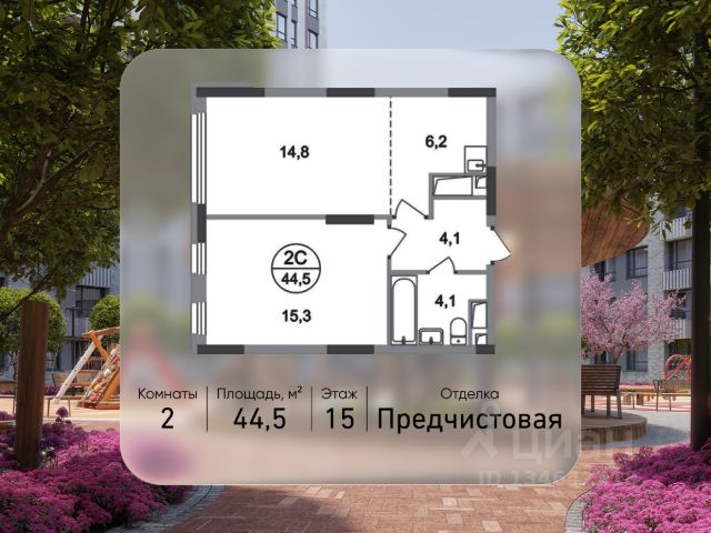 Строим кварталы для жизни с заботой о будущем. Предлагаются 2-комнатные апартаменты бизнес-класса площадью 55,07 кв.м в корпусе 2.2 на 15-м этаже, в жилом комплексе "Тропарево Парк". Проект строится полностью с отделкой, которая включает ламинат, обои под покраску, натяжной потолок. Установлены двойные стеклопакеты увеличенного формата до 180 см, которые не только сохраняют тепло в доме, но и пропускают много солнца, делая комнаты светлее. Стены в ванной и санузлах отделаны керамогранитом под мрамор, установлена вся нужная сантехника. Для стиральной машины уже предусмотрено место. Прописка не предусмотрена в рамках юридического статуса - апартаменты. Приобрести апартаменты возможно по специальным акциям от застройщика, с текущими условиями акций можно ознакомиться в блоке "Акций". Цена динамическая и может отличаться, уточняйте актуальность у застройщика. "Тропарево Парк" — комплекс апартаментов бизнес-класса рядом с Ленинским проспектом, в Новой Москве. Находится всего в 10 минутах пешком от станции метро "Румянцево". Включает 7 жилых корпусов высотой от 16 до 23 этажей, приватные дворы-сады, обширную зеленую территорию с общественными пространствами. Из части апартаментов открываются виды на Тропаревский лесопарк, расположенный рядом.