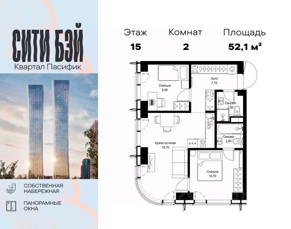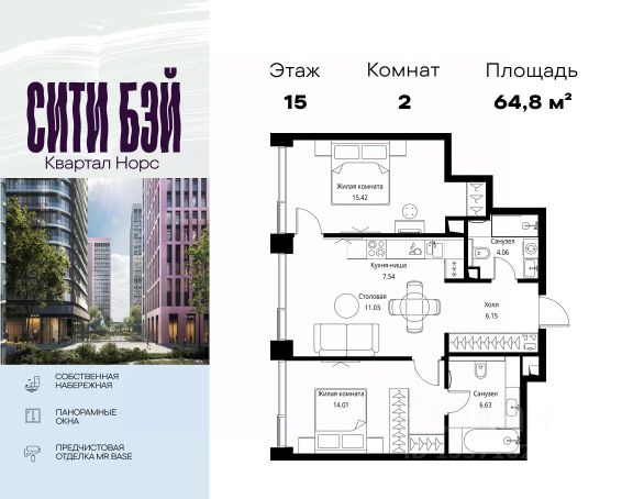 Продаётся 2-комнатная квартира 54 м². В жилом районе Алиа на 15-м этаже 30-этажного дома. Жилой район Алиа — это дома бизнес-класса у слияния Москвы-реки и Сходни. Алиа находится в Покровском-Стрешневе, экологически чистом районе на престижном северо-западе столицы. Район возводится на бывшей территории Тушинского аэрополя, где никогда не было промышленного производства. Алиа — это район разностороннего развития, спроектированный по принципу WORK.LIVE.PLAY.LEARN. Это "15-минутный город", где вся необходимая для комфортной жизни инфраструктура — на расстоянии приятной прогулки. У района удобное расположение: отсюда меньше 10 минут пешком до станций метро "Спартак" и "Тушинская" и всего полчаса на автомобиле до центра города или аэропорта Шереметьево. Архитектурную концепцию Алиа разработало бюро SOM (Skidmore, Owings & Merrill), авторы знаменитой "Бурдж-Халифа". В Алиа больше 140 планировочных решений, среди которых — редкие для Москвы форматы: квартиры с окном в ванной, пентхаус, сити-юниты и таунхаусы. Почти половина территории района отдана под благоустройство. В Алиа три парка: Линейный парк с кафе и магазинами, Центральный парк с амфитеатром, сухим фонтаном и большим плейхабом для детей всех возрастов и Прибрежный парк на собственной набережной, одной из самых длинных в Москве. В каждом урбан-блоке — закрытый внутренний двор с гипоаллергенными растениями и детской площадкой. В лобби каждого жилого корпуса в Алиа оборудована зона ожидания, колясочная, гостевой санузел и лапомойка для домашних животных. За стойкой ресепшена резидентов и их гостей встречает консьерж. Центральное лобби урбан-блока — это стильное общественное пространство с коворкингом, лаундж-зоной и кофе-пойнтом. Это "вторая гостиная" жителей урбан-блока и одно из мест, где формируется комьюнити Алиа. Два ключевых объекта инфраструктуры в Алиа — это спорткомплекс "Чкалов Арена", где представлены 25 видов спорта, и самый большой в стране бизнес-парк класса A, благодаря которому району обеспечено быстрое развитие.