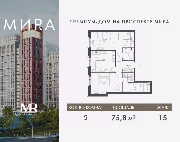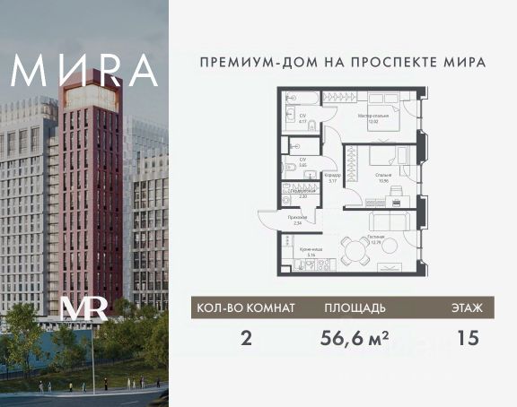 Прямая продажа от застройщика. Продаётся 2-комнатная квартира общей площадью 62.29 м² без отделки в доме премиум-класса МИRА на 15-м этаже 23 этажного дома. Квартира расположена в корпусе 2. Дом премиум-класса МИRA это: • Спокойный район с богатой историей и сложившейся инфраструктурой • Авторская архитектура на стыке классики и современности • Вход в парк прямо из жилого комплекса • Панорамные виды на Яузу, парки, ВДНХ и скульптуру "Рабочий и колхозница" • Удобные сервисы и безопасность для каждого резидента Расположение: Жилой квартал расположен в Алексеевском районе на северо-востоке Москвы, на второй линии домов, таким образом вы сможете дистанцироваться от шума и суеты проспекта Мира, но при этом будете жить недалеко от этой важной городской магистрали. Прямо у дома: • Парк Акведук • Река Яуза • Памятник "Рабочий и колхозница" Пешком: • 16 мин м. ВДНХ На автомобиле: • 12 мин ТТК • 15 мин Садовое кольцо • 12 мин Национальный парк "Лосиный остров" Благоустройство: Концепция благоустройства от бюро "ДРУЖБА" разработана в стиле "Лесная тропа". В уютном дворе расположились словно затерянные в лесу, площадки для отдыха. Они разделяются островками с травами, кустарниками, крупными камнями и деревьями, между которыми проходят узкие песчаные тропинки с деликатной подсветкой по вечерам. Центральной точкой притяжения для жителей станет главная площадь с фонтаном, которая открывается сразу из двух входных групп. Внутренний двор МИRA: • Детская площадка с зонами для игр малышей до трех лет и детей более старшего возраста • Спортивная площадка с профессиональным оборудованием для тренировок • Декоративные перголы • Воздушный арт-объект с подсветкой, похожий на облако • Чайный домик, где в отдельном отапливаемом павильоне можно в любое время года попить кофе с соседями или устроить камерное семейное чаепитие • Зоны для работы и отдыха с гамаком под навесом, скамейками и креслами Инфраструктура и окружение: В Алексеевском районе есть огромные благоустроенные парки, магазины, гимназии с высоким рейтингом и филиалы ВУЗов, частные и государственные детские сады, модные кофейни и фитнес-центры. В квартале МИRА предусмотрены: • 2 ресторана с видом на парк Акведук • 3 кафе • фитнес-студия • подземный паркинг на 330 машино-мест Компания MR предлагает своим клиентам специальные условия приобретения квартир в рамках программ ипотечного кредитования от банков-партнеров.
