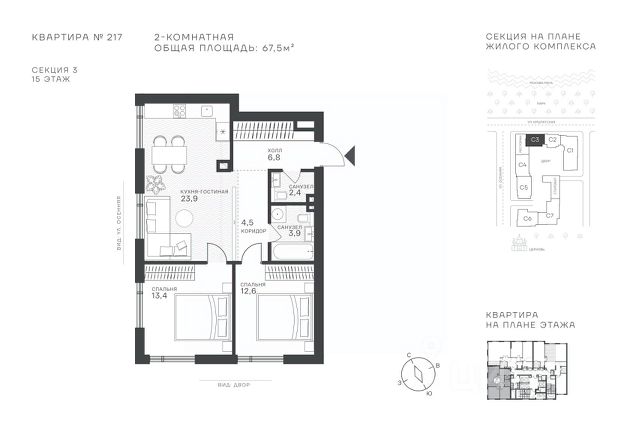 Старт продаж новой очереди! Продаётся 2-комнатная квартира общей площадью 57.57 м² без отделки в ЖК Веер на 15-м этаже 59 этажного дома. Веер.2 — вторая очередь футуристичного квартала бизнес-класса Веер. Это новая экосистема в престижном Западном округе Москвы, поражающая масштабностью внутренней инфраструктуры. ЖК находится всего в 5 минутах от Кутузовского проспекта и в 15 минутах от Сколково. Ансамбль из четырех стеклянных башен с доминантой в 237 метров разработан по принципу современного урбанизма и выражен в лаконичных объемах — параллелепипедах со сглаженными углами, которые придают зданиям утонченный вид. Расположение и транспортная доступность: • Образовательный комплекс в составе топовой школы, состоящий из двух зданий: основное на 1500 школьных и 450 дошкольных мест, отдельное здание детского сада на 300 мест. • Парк "Долина реки Сетунь" площадью более 700 гектаров • Рядом МГУ, МГИМО, РАНХиГС и Академия ФСБ • 15 минут по Кутузовскому проспекту до ужина в центре с видом на Москву-реку • 18 минут пешком до м. "Давыдково" • Открытие новых станций метро в шаговой доступности в будущем Инфраструктура: Двор в Веер.2 — это ассиметричные холмы, каменные "лабиринты", зеленые ковры и хвойные островки с единой живой экосистемой. Здесь есть все: • Павильон умиротворения Место отдыха под навесом в спокойной части двора, окруженное деревьями. • Активная тропа Тактильная дорога из камней разного диаметра для расслабляющих прогулок. • Бизнес-гарден Оборудованное пространство для работы на свежем воздухе со столом и встроенными розетками. • Детская площадка Двухуровневая площадка "Ботаника" с песочницей, переговорной трубой и горкой "Дружба". Компания MR предлагает своим клиентам специальные условия приобретения квартир в рамках программ ипотечного кредитования от банков-партнеров.