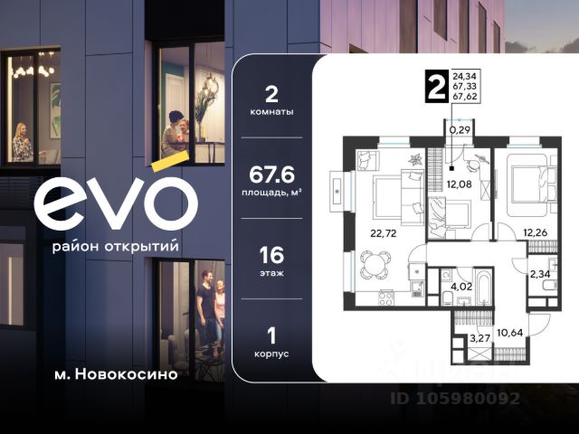 Продаю уютную и просторную двухкомнатную квартиру в современном жилом комплексе Мкрн. Центральный по адресу: Московская область, Долгопрудный, Новый бульвар, 7. Общая площадь квартиры составляет 65.8 кв. м, она расположена на 16 этаже 25-этажного дома. До станции МЦД "Долгопрудная" всего 13 минут пешком.