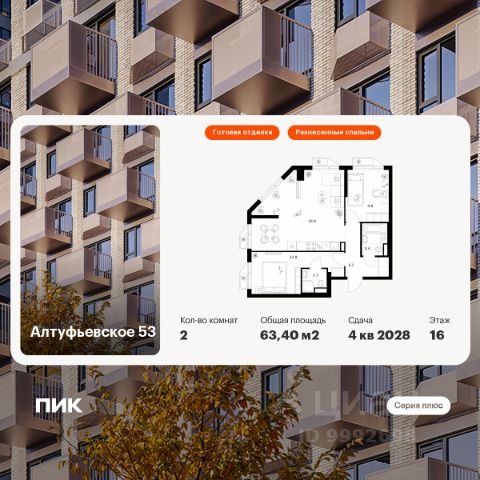 Продаётся 2-комн. квартира площадью 61,3 кв.м на 16 этаже 22 этажного дома (Корпус 1.1, Секция 1) проекта ПИК Алтуфьевское 53. Светлый просторный подъезд на уровне земли, функциональная планировка, большие окна, c отделкой. Проект "Серии плюс" возводится на северо-востоке Москвы. Рядом — удобный выезд на Алтуфьевское шоссе, а оттуда — на ТТК и МКАД, так что до центра Москвы вы доедете на машине примерно за 20 минут. До станции метро "Отрадное" можно доехать на транспорте за 15 минут. За 20 минут получится доехать до станции "Бибирево". Столько же займёт прогулка до станции МЦД "Дегунино". Архитектурную концепцию проекта разработало российское бюро M.A.M. Искусная работа с формой зданий позволила проекту воплотить в себе современную элегантность и функциональность. В проекте представлено множество планировок семейного формата: с мастер-спальнями и комнатами, разнесёнными по разным сторонам квартиры, чтобы у каждого было своё личное пространство. Большие семьи также оценят удобные планировки с постирочными и гардеробными. А также уникальные форматы квартир с террасами, балконами и лоджиями. В проект входят монолитные дома, два детских сада и подземный паркинг. На территории будет городская школа. Во дворах мы построим уютные парки с детскими площадками и местами для отдыха. Здесь вы сможете даже смотреть кино и работать — для этого во дворах-парках будет Wi-Fi. Чуть дальше от домов мы разместим спортивные площадки, чтобы шум от них не мешал жителям. В тихих и быстрых лифтах будут усилители связи, чтобы она не прерывалась и жители продолжали говорить по телефону или проверять соцсети даже перемещаясь между этажами. В окружающем районе есть всё для комфортной жизни: детские сады, школы, торговые центры, парки для прогулок, фитнес-клубы и даже бассейн. Артикул 1003767 (Застройщик ООО СЗ "Перспективные решения")