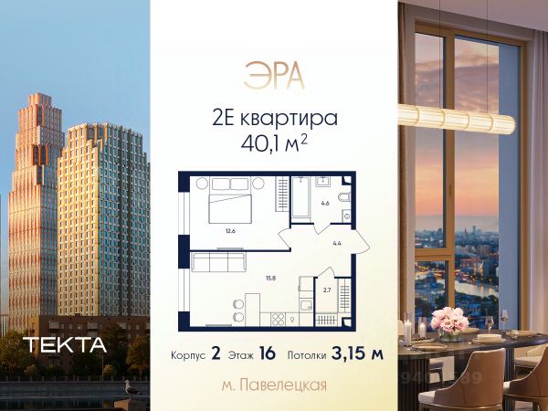 Рассрочка 0% с платежом от 250 000 ₽ в месяц. 2-комн. квартира в ЖК "ЭРА" на 16 этаже в 33 этажном здании Корпус 2. Общая площадь: 40.1 кв.м., жилая: 22.90 кв.м. Высота потолков 3.15 м. Современный премиум-квартал ЭРА на Дербеневской набережной, формирующий новый архитектурный облик Даниловского района Москвы. Жилой комплекс из шести высотных корпусов выполнен в актуальной интерпретации стиля ар-деко, где ритмичные линии фасадов, натуральный мрамор и изысканные орнаменты создают гармоничный и запоминающийся образ. ЭРА предлагает жителям единый просторный закрытый двор. Инфраструктура двора включает разнообразные детские игровые площадки, зоны для занятий спортом, а также места для спокойного отдыха — в всесезонном зеленом лабиринте или яблоневом саду. Для озеленения территории планируется высадка около 3000 деревьев и кустарников. Их сохранность обеспечат система автополива, а для комфорта в холодное время года малые архитектурные формы будут оборудованы подогревом. Первая очередь комплекса представлена тремя корпусами высотой от 27 до 33 этажей. Жителей встречают величественные входные группы по авторскому проекту бюро ХААСТ с высотой потолков 6,5 метров. Для максимального удобства каждая из них оборудована гостевым санузлом, просторной колясочной с выделенной зоной для мойки колес и лап питомцев. Доступ обеспечивается через современные системы безопасности: теплые тамбуры оснащены вызывными панелями с биометрическим контролем. Двери оборудованы электроприводами, что позволяет входить без усилий. В каждом вестибюле создано уютное лаунж-пространство — идеальная зона для отдыха или встречи гостей, дополняющая образ безупречного сервиса. Жителям комплекса доступен подземный паркинг с расширенной инфраструктурой. Здесь, для вашего удобства, расположена собственная автомойка на три поста. Паркинг также оборудован персональными кладовыми помещениями и специальными мусорокамерами на каждом из -1 этажей. Ключевое преимущество — превосходная локация в развивающемся районе с готовой инфраструктурой. Всего в 5 минутах от Садового кольца, в шаговой доступности от Замоскворечья и набережной Москвы-реки, вы сможете наслаждаться динамикой городской жизни. При этом в самом комплексе на первых этажах будут работать кафе, магазины, салоны красоты и детские образовательные пространства. ЭРА — это гармоничный симбиоз статусного адреса, безупречного сервиса и приватности для жизни вашей мечты.