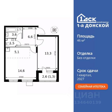 ТОЛЬКО 4 ДНЯ ДО 10.02 • Дополнительная скидка 10% • Ставка 10% по стандартной ипотеке для всех без наценок • Ставка 3,5% по семейной ипотеке Успейте купить выгодно! Прямая продажа от застройщика! Жилой Комплекс класса Комфорт Плюс. Продаётся 2-к квартира номер 685 общей площадью 46 кв.м. на 16-м этаже 24 этажного здания. Без отделки. Особенности квартиры: - МЦД-5 в пешей доступности - Квартал с собственной набережной - Свои 2 детских сада и школа - Просторная спальня, в которой можно разместить большую кровать. - Линейная планировка - максимальная функциональность и удобство. - Раздельный санузел - больше удобства для всех членов семьи. - Евроформат - просторное и удобное жилье с отличной планировкой. - Кухня-гостиная - идеальное пространство для встреч с близкими. - Линейная кухня - функциональность и практичность в одном решении. - Лоджия - уютное место для отдыха и тишины. Информация о комплексе: Комплекс 1-й Донской расположен в 7 км от МКАД по трассе М-4 Дон. В нем сочетаются все плюсы комфортной городской среды и природного окружения. В проекте достаточно большой процент квартир, выходящих на 2-3 стороны света. Секции-маяки формируют у зданий визуальную L-форму, что придает застройке структуру и ритмику объемов. На ощущение динамики работает и разная этажность зданий. Теплая цветовая палитра фасадов отражает природу Дона. Вечерами дома преображаются благодаря архитектурной подсветке, выгодно выделяясь на городском фоне. Природа оказывает положительное влияние на человека на всех уровнях восприятия: через зрение, запахи, звуки, тактильные ощущения. Неподалеку от ЖК Первый Донской: Ермолинский парк, Видновский лесопарк, Жуковский парк Транспортная доступность: Комплекс удобно расположен в 7 км от МКАД по трассе М-4 Дон (через Видное). Расстояние до Каширского шоссе составляет 12 км. Добраться до метро и центра Москвы позволяет развитая сеть маршрутов общественного наземного транспорта. Действующая ж/д станция Калинина Павелецкого направления в 15-17 минутах ходьбы (МЦД-5 в 2025-2026 гг). Внутренняя инфраструктура: Проект 1-й Донской соседствует с бурно развивающимся районом, основная инфраструктура которого уже сложилась. В строительстве современных жилых комплексов в округе есть свои плюсы: здесь формируется продуманная и комфортная городская среда. Что касается внутренней инфраструктуры, на территории квартала будут расположены собственные муниципальные 2 детских садика и школа, которые помогут совместить приятное с полезным. Территория комплекса пронизана целой сетью живописных пешеходных маршрутов, позволяющих попасть в любой уголок района. Основные пути, как водится, "торговые". Они проходят вдоль магазинов, кафе и других представителей коммерции и отделяются от проезжей части зеленой "фито" - стеной. Среди крупных социальных объектов предусмотрены своя поликлиника и торговый центр с примыкающей площадью для общественных мероприятий. Уют начинается с продуманного подъезда. Сквозные подъезды