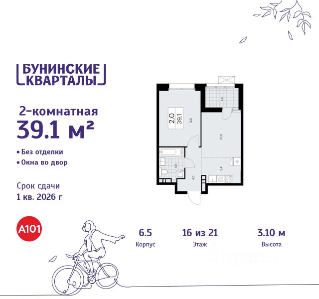 В жилом комплексе, расположенном по соседству с ландшафтным парком "Южное Бутово", продается 2-комнатная квартира площадью 65.10 кв. м. без отделки. Квартира расположена на 16 этаже 1 корпуса в жилом квартале комфорт-класса "Новые Смыслы" (ГК Unikey/Юникей). Доступная и удобная локация: - 10 минут ходьбы до станции метро "Потапово". - 25 минут ходьбы до станции метро "Бунинская аллея". - 15 минут на авто до Калужского шоссе. - 20 минут на авто до МКАД. - 30 минут на машине до аэропортов "Внуково" и "Остафьево". Продуманный архитектурный проект: - Разноуровневые секции с эстетичные башнями и контрастными цветовыми сочетаниями, напоминающими башни в Сити. - Сказочные виды из окон на современный район столицы. - Авторские планировки с потолками в 3 метра, просторными кухнями-гостиными и мастер-спальнями. - Комфортные бесплатные общественные пространства. - Подземный паркинг с прямым доступом на лифте. - Настоящий лес с живописными пейзажами и прудом прямо во дворе. Расположение Комплекс "Новые Смыслы" расположится в благоприятном районе Новой Москвы - Коммунарка. Зеленое окружение, богатая инфраструктура развивающегося района - все это сформирует особое пространство для комфортной жизни, наполненной смыслом. 10 минут на велосипеде - и вы в ландшафтном парке "Южное Бутово" или сквере у Потаповских прудов. Чуть дальше расположен Бутовский лесопарк. В окружении "Новых Смыслов" вы найдете все необходимые социальные объекты. В двух шагах от дома находится 5 школ, более десятка детских садов, секции для занятий малышей и подростков, частные клиники, супермаркеты, рестораны, студии красоты и фитнес-центры. За 12 минут на авто вы доберетесь до ледовой арены, комплекса "Спорт Станция" и спа-центра "Termoland". Внутренняя инфраструктура Для жителей "Новых Смыслов" будут созданы бесплатные общественные пространства: - Деловая гостиная с эстетичным коворкингом и переговорными. - Гостиная для души и тела, включающая фитнес-зону с тренажерами и пространства для стретчинга, йоги и медитаций. - Гостиная детства, где дети будут играть и развиваться под присмотром тьютора. - Кино-гостиная - кинотеатр на крыше одного из домов, предлагающий разнообразную программу. - Прачечная, работающая только для жильцов. Вместе с корпусами комплекса на территории запланировано строительство детского сада. На первых этажах корпусов откроются кофейни, пекарни, сервисы быта и пункты доставки. Благоустройство Чтобы отдохнуть от суеты города, достаточно выйти во двор: здесь раскинулся настоящий лес с живописными пейзажами. В тени деревьев жителей ждут пруд с мостиком и беседкой на берегу, тихие прогулочные аллеи, спортивная площадка и зоны для занятий йогой и бадминтоном на свежем воздухе. Юных жителей порадуют современные детские площадки, жукарий и специальное пространство для подвижных игр. Безопасность на территории гарантирована: двор огорожен от машин и оснащен камерами видеонаблюдения.