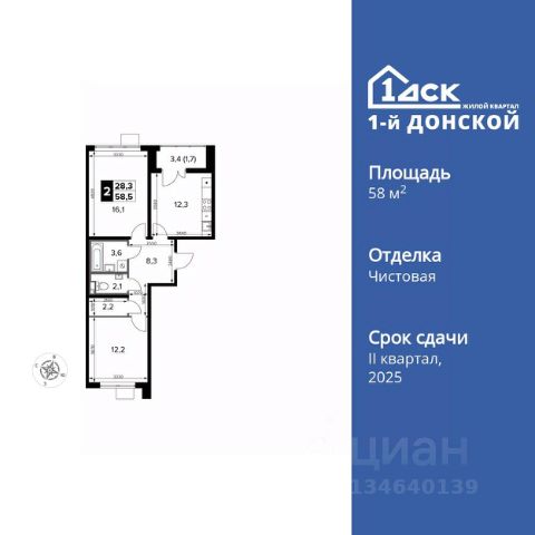 Продается 2-комнатная квартира общей площадью 57.3 кв. метров на 16 этаже жилого комплекса ВЕЙВ. Комплекс располагается на юге Москвы в районе Москворечье-Сабурово. В пешей доступности расположены станция МЦД "Москворечье" и станция метро "Борисово". Для автомобилистов есть удобное сообщение с Каширским шоссе. Первая очередь строительства носит название "Оттенки синего" и состоит из четырех башен, высотой от 14 до 52 этажей: Azure, Bondi, Indigo, Sapphire. Автором первой очереди является бюро "СПИЧ". Ключевым преимуществом ВЕЙВ является благоустроенная набережная со смотровой площадкой, беговыми и велодорожками, детскими и спортивными. В центре квартала появится зеленый пешеходный бульвар с детскими и спортивными площадками, а также зоной тихого отдыха. Вокруг жилого квартала сосредоточены более 2000 га зеленых пространств: парк "Борисовские пруды", Братеевский каскадный парк, парк 850-летия г. Москвы, музеи-заповедники "Царицыно" и "Коломенское". Особое внимание в ВЕЙВ уделено интерьерам лобби, выполненным в современном стиле с яркими акцентами. Стильное пространство разделено на несколько зон: ресепшен, зона ожидания с Wi-Fi и мягкими креслами, колясочная и лаконичный лифтовый холл. Для автомобилистов предусмотрен двухуровневый подземный паркинг с видеонаблюдением, усилителем сотовой связи и системой распознавания номеров.