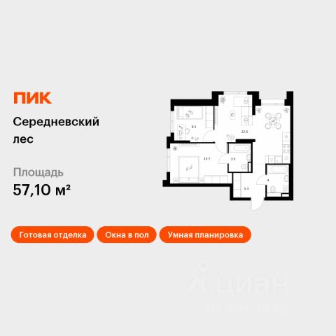 Продается двухкомнатная квартира без отделки в 9 фазе города-парка "Первый Московский". Общая площадь квартиры - 55,5 кв. м, этаж 16 из 19. Срок сдачи - 4 квартал 2026 года. Тип дома - монолитный. Новый корпус состоит из 2х секций, без отделки. Город-парк "Первый Московский" расположен всего в 7 км по Киевскому шоссе (Новая Москва). Из города-парка прямой выезд на Киевское шоссе и трассу Солнцево-Бутово-Варшавское шоссе. ТРАНСПОРТНАЯ ДОСТУПНОСТЬ: - 5 мин. на личном автомобиле или 10 мин. на автобусе 189, 147, 193 до станции метро "Филатов Луг" - 5 мин. на личном автомобиле или 12 мин. на автобусе 863 до станции метро "Саларьево" - 6 мин. на личном автомобиле или 15 мин. на автобусе 333 до станции метро "Рассказовка" РАЗВИТАЯ ИНФРАСТРУКТУРА В ОКРУЖЕНИИ: - общеобразовательная школа 2120 корпуса д1, д7, ш1-ш5 - детский сад 2120 корпуса д2, д9 - школа искусств - городская больница, детская поликлиника, филиал 5 - подстанция скорой помощи 58 и пожарно-спасательный центр 313 - отдел полиции, отдел ГИБДД - торговые центры Столица и Новомосковский - стадион, каток, бассейн - кафе, продуктовые магазины, аптеки, фитнес центры, салоны красоты и пр. БЛАГОУСТРОЙСТВО: - детская площадка для малышей и детей до 12 лет - места отдыха для родителей в непосредственной близости - озеленение территории с учетом зонирования - максимальная близость корпуса к пару Филатов луг ОСОБЕННОСТИ АРХИТЕКТУРЫ: - безбарьерные входные группы - колясочные в каждой входной группе - коммерческие помещения на 1 этаже в двух секциях - кладовые помещения расположены на жилых этажах и на -1 этаже - в каждой секции корпуса по 3 лифта: 2 пассажирских, 1 грузовой - на фасадах предусмотрены корзины для установки внешних блоков кондиционеров - видеонаблюдение установленное в холлах первых этажей, у подъездов и прилегающей территории АВТОРСКИЙ ДИЗАЙН: Входные группы выполнены по авторскому дизайну, оснащены системой "тёплый пол". В каждой входной группе будет располагаться комфортабельная зона ожидания, почтовые ящики с ячейкой для спама, колясочная, акцентные пуфы и столик.
