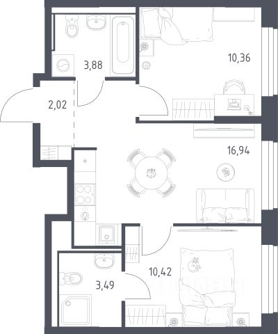 Продаётся 2-комнатная квартира 254, площадью 44,40 м², на 16 этаже в ЖК "Бригантина" корпус 1. Стоимость — от 12391224 руб. Квартира white box, планировка угловая, окна во двор.