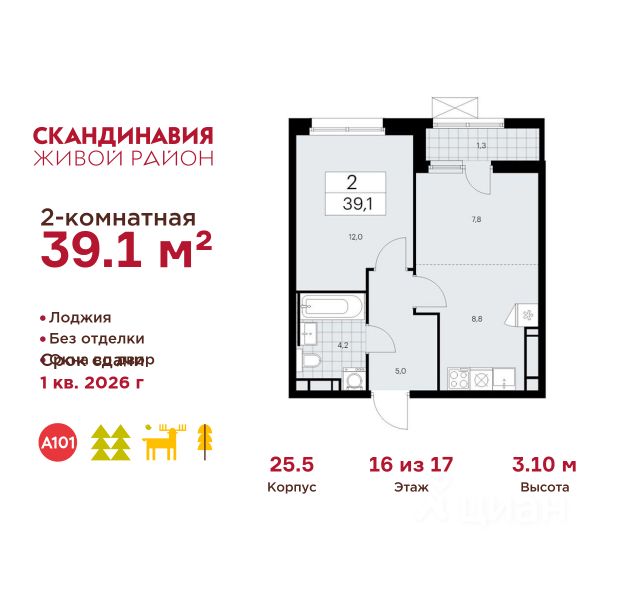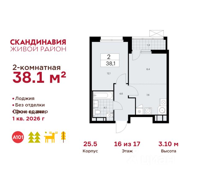 Пешая доступность от метро и московская прописка! Продается уютная 2-комн. квартира площадью 65,8 кв.м на 16 этаже 17 этажного жилого комплекса бизнес-класса Foreville от 3S Group. Общая площадь: 65,8 кв.м., жилая: 41,3 кв.м., площадь кухни-гостиной: 22,7 кв.м., высота потолков: 3 м., окна выходят во двор и на улицу. Квартира предлагается без отделки, что идеально подходит для воплощения собственного дизайнерского решения. Также доступна опция предчистовой отделки, стоимость которой включается в общую цену квартиры. О проекте: Пространство Комплекс располагает крупнейшим приватным двор-парком в Новой Москве площадью 1,2 Га, предлагая жителям огромное пространство для отдыха, спорта и игр на свежем воздухе. Природный ландшафт Внутренний лесопарк с более чем 183 взрослыми деревьями и 10 320 цветущими кустарниками создает уникальную природную атмосферу для каждого времени года. Игровые и спортивные зоны Обширные площадки с безопасным покрытием, специализированные зоны для детей разных возрастных групп и взрослых, включая воркаут и настольный теннис, способствуют активному и здоровому образу жизни. Экологичность и долговечность Использование натуральных материалов, таких как лиственница, и крупноформатной бетонной плитки для покрытия, подчеркивает стремление проекта к экологичности и устойчивости. Безопасность и уединение Внутренний двор без машин обеспечивает безопасность для детей и спокойствие для взрослых. Территория огорожена и находится под круглосуточным видеонаблюдением. Сохранение времени Благодаря превосходной транспортной доступности и близости к новой станции метро Корниловская, Foreville позволяет жителям экономить время для семьи и отдыха на природе, минимизируя необходимость длительных поездок. Foreville не просто жилье, а целая экосистема для комфортной и гармоничной жизни на свежем воздухе, совмещая преимущества городской инфраструктуры и непосредственную близость к природе.