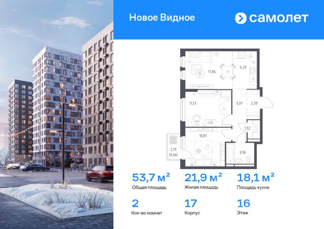 Монолитно-кирпичный дом комфорт-класса. Просторная квартира 59,10 (62,47)м2. Особенность квартиры: выход окон на две стороны света Восток и Север, панорамный вид из окна во двор и на лес, холл 6,86 м2, комнаты 15,54+15,92 м2, кухня 11,85 м2, ванная комната 5,57 м2, лоджия 6,73 м2.