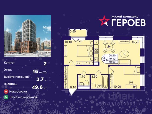 Продаётся 2-комнатная квартира 53.20 кв. м. в жилом комплексе "Героев" в Балашихе, Железнодорожный. Квартира расположена на 16 этаже 610 корпуса. В наличии квартиры с отделкой. Всего 40 минут до центра Москвы. При покупке квартиры в сданном доме ключи выдаются сразу! Жилой квартал "Героев" - это уютный проект для семей с детьми. В квартале созданы все условия для досуга всех возрастов: игровые и спортивные площадки, места для отдыха и прогулочные зоны. За 15 минут можно дойти от дома до Ольгинского лесопарка, популярного места для отдыха на свежем воздухе. На территории жилого комплекса уже открыт детский сад на 250 мест и началось строительство еще одного - для 220 малышей, а также школы для 1320 учеников. Рядом работают магазины, кафе, супермаркеты, пункты выдачи. Преимущества: • В уютных светлых квартирах с просторными кухнями-гостиными удобно встречать гостей и проводить время наедине друг с другом. • Благодаря увеличенному остеклению в комнатах много света. • Квартиры продаются с отделкой, можно заселяться сразу после получения ключей.