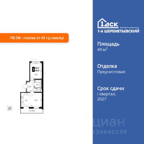 Продается двухкомнатная квартирав жилом комплексе комфорт класса "Химки Тайм" площадью 48.54 кв.м на 16 этаже 20 этажного дома. Квартира с полной отделкой, окна выходят во двор и на улицу. Прекрасный выбор для первой квартиры или инвестиций. Комфортные квартиры по комфортной цене! • Скидки на квартиры до 17% (стоимость квартиры в карточке указана с учетом скидки). • Семейная ипотека без дополнительных комиссий • IT ипотека без дополнительных комиссий • Квартиры "под ключ", сдаются с чистовой отделкой, в светлых и темных тонах на ваш выбор. • Точечная застройка с готовым ремонтом: выбирайте дом, где слышно птиц, а не стройку. Живите ДОМА, а не на стройплощадке. • Бесплатный наземный паркинг грамотное планирование потоков машин и пешеходов позволяют сделать дом удобным для всех. Не нужно переплачивать за подземный гараж. • Прекрасный выбор для первой квартиры или инвестиций. В 20252027 недалеко будет запущен Индустриальный парк "Молжаниново" технологичный объект, который станет еще одним катализатором развития района, предоставит рабочие места высококвалифицированным специалистам и подстегнёт спрос на покупку и аренду квартир. Успейте вложиться по выгодной цене. До центра Москвы на учебу, работу и по любому поводу — это быстро! • 5 мин пешком до скоростной линии МЦД-3 "Молжаниново". • От 30 мин на автобусе или маршрутке до ст.м. "Сходненская", "Речной вокзал". Остановка общественного транспорта "Филино" около ЖК. • На автомобиле удобный выезд на Ленинградское шоссе: до центра Москвы — 40 минут, до международного аэропорта Шереметьево — 20 минут. В состав чистовой отделки входит всё, что нужно для комфорта. Вкладывайте в себя и в детей, а не в ремонт! • Выравнивание полов, стен и потолков • Покрытие полов ламинатом • Поклейка обоев • Монтаж натяжных потолков с установкой светильников • Установка межкомнатных дверей • Установка радиаторов отопления • Выкладывание плиточного "фартука" на кухне • Установка водопроводных и канализационных труб в "мокрой зоне" на кухне • Укладывание плитки в ванной комнате • Установка сантехники • Установка счетчиков • Разводка электросети • Монтаж розеток, выключателей Архитектура на многие десятилетия! • Дома строятся по монолитной технологии с вентилируемыми фасадами. В квартирах будет комфортный микроклимат в любой сезон, а корпуса сохранят достойный внешний вид в течение долгого времени. • В каждом корпусе один подъезд и 3 лифта это не человейник. • В каждом подъезде есть отдельная комната для хранения спортивного оборудования. Инфраструктура на территории качественный дом с понятной "начинкой". • На первых этажах расположатся магазины, салоны красоты и кафе • Внутри ЖК будет муниципальный детский сад • 2 спортивные площадки • 2 площадки для отдыха взрослого населения • 4 детские игровые площадки Собственный паркинг ваша машина около вашего дома. • В ЖК своя бесплатная наземная автостоянка на 210 машиномест Окружение выбирайте ЖК