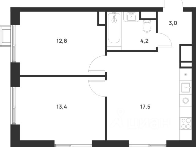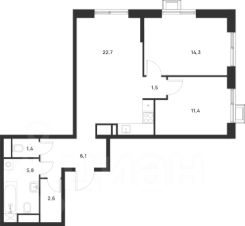 совмещенный санузел - 4,1 кв м