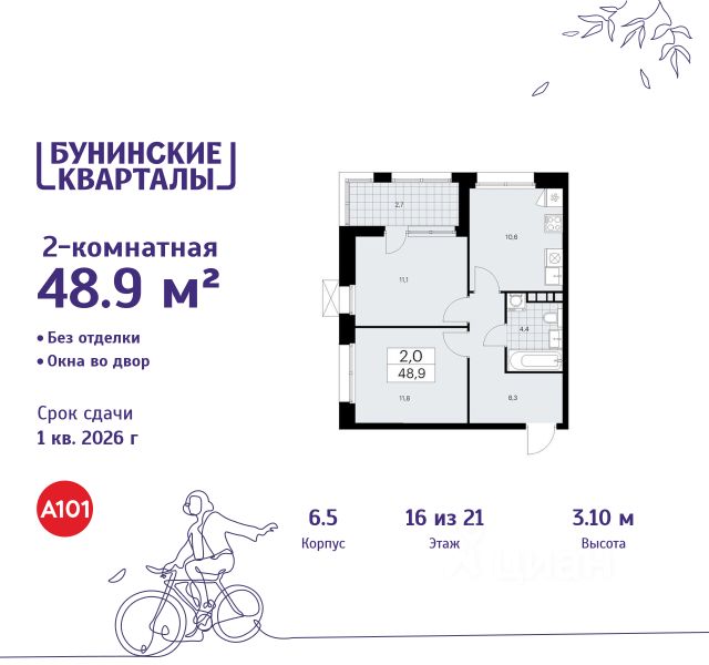 Продаётся 2-комн. квартира площадью 58,8 кв.м на 16 этаже 16 этажного дома (Корпус 2.6/1.1, Секция 1) проекта ПИК Бунинская набережная. Светлый просторный подъезд на уровне земли, функциональная планировка, большие окна, c отделкой. Удобное расположение: 18 минут пешком от м. "Потапово" и 12 минут на автомобиле до станции "Бунинская аллея". 12 минут на автомобиле до трассы Солнцево — Бутово — Варшавское шоссе. 20 минут на автомобиле до МКАД и Калужского шоссе. 1520 минут езды до живописных парков: "Бутовский лесопарк", заказник "Южное Бутово". Особенности проекта Камерный квартал в Новой Москве, на берегу Ивановского пруда. Одна из ключевых особенностей проекта — квартиры с панорамным видом на воду. Архитекторы вдохновились локацией проекта: природные оттенки и активная пластика корпусов напоминают рельефные выступы на берегу, а окна отражают водную гладь, визуально объединяя дома с природой. Преимущества проекта Светлые и просторные лобби с зонами ожидания. Подземный паркинг. Набережная и пешеходная аллея для прогулок. Парк на склоне с игровой зоной. Готовая инфраструктура района: 3 школы, 6 детских садов, взрослая и детская поликлиники. Артикул 968458 (Застройщик ООО СЗ "Стройком")