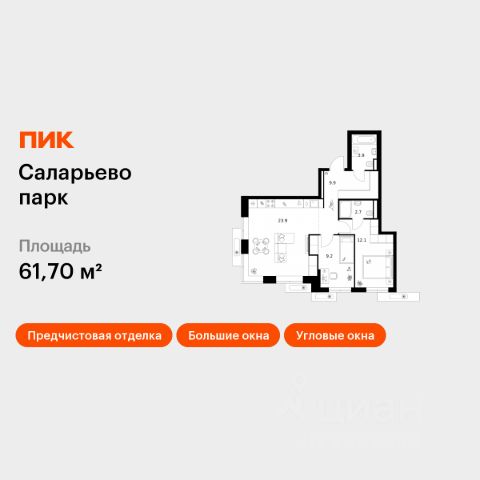 Продается двухкомнатная квартира без отделки в 9 фазе города-парка "Первый Московский". Общая площадь квартиры - 67 кв. м, этаж 16 из 19. Срок сдачи - 4 квартал 2026 года. Тип дома - монолитный. ТОЛЬКО ДО 28 ФЕВРАЛЯ: • Рассрочка до 13 месяцев с первоначальным взносом от 10% • Ежемесячный платеж от 50 000 руб. *подробную информацию по скидкам и акциям уточняйте в отделе продаж. Корпус состоит из 2х секций, без отделки. Город-парк "Первый Московский" расположен всего в 7 км по Киевскому шоссе от МКАД на территории Новой Москвы. Из города-парка прямой выезд на Киевское шоссе и трассу Солнцево-Бутово-Варшавское шоссе. ТРАНСПОРТНАЯ ДОСТУПНОСТЬ: - 5 мин. на личном автомобиле или 10 мин. на автобусе 189, 147, 193 до станции метро "Филатов Луг" - 5 мин. на личном автомобиле или 12 мин. на автобусе 863 до станции метро "Саларьево" - 6 мин. на личном автомобиле или 15 мин. на автобусе 333 до станции метро "Рассказовка" РАЗВИТАЯ ИНФРАСТРУКТУРА В ОКРУЖЕНИИ: - общеобразовательная школа 2120 корпуса д1, д7, ш1-ш5 - детский сад 2120 корпуса д2, д9 - школа искусств - городская больница, детская поликлиника, филиал 5 - подстанция скорой помощи 58 и пожарно-спасательный центр 313 - отдел полиции, отдел ГИБДД - торговые центры Столица и Новомосковский - стадион, каток, бассейн - кафе, продуктовые магазины, аптеки, фитнес центры, салоны красоты и пр. БЛАГОУСТРОЙСТВО: - детская площадка для малышей и детей до 12 лет - места отдыха для родителей в непосредственной близости - озеленение территории с учетом зонирования - максимальная близость корпуса к пару Филатов луг ОСОБЕННОСТИ АРХИТЕКТУРЫ: - безбарьерные входные группы - колясочные в каждой входной группе - коммерческие помещения на 1 этаже в двух секциях - кладовые помещения расположены на жилых этажах и на -1 этаже - в каждой секции корпуса по 3 лифта: 2 пассажирских, 1 грузовой - на фасадах предусмотрены корзины для установки внешних блоков кондиционеров - видеонаблюдение установленное в холлах первых этажей, у подъездов и прилегающей территории АВТОРСКИЙ ДИЗАЙН: Входные группы выполнены по авторскому дизайну, оснащены системой "тёплый пол". В каждой входной группе будет располагаться комфортабельная зона ожидания, почтовые ящики с ячейкой для спама, колясочная, акцентные пуфы и столик.