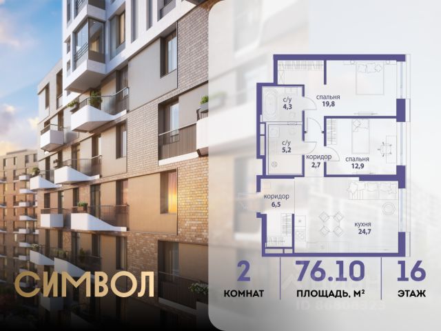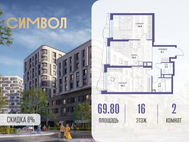 Продается 2-комнатная квартира от застройщика: общая площадь 69.80 м², жилая 36.60 м², кухня 18.20 м², 16-й этаж, жилой квартал "Вдохновение", корпус 34 (секция 1). Срок сдачи: 4 квартал 2027 года. Позвоните сейчас и забронируйте квартиру! Квартал бизнес-класса СИМВОЛ - это городское пространство нового поколения в историческом районе Лефортово, на границе ЦАО, в 2 км от Садового кольца. Бионическая архитектура СИМВОЛА превратила Лефортово в суперсовременное и модное пространство. Из окон, с балконов и террас просторных квартир СИМВОЛА открываются отличные виды на город и новый парк "Зеленая река", "протекающий" через все кварталы комплекса на 2 км. В квартале уже есть все, что нужно для комфортной жизни: кафе и рестораны, супермаркеты и магазины, медицинские и физкультурно-оздоровительные центры, салоны красоты и барбершопы, аптеки и оптики, химчистки, пункты доставки и другие сервисы - всего более 90 действующих объектов внутриквартальной инфраструктуры. Для юных жителей СИМВОЛА открыты детский сад и инженерный лицей при МГТУ им. Баумана. Особенности квартала: • Свой парк "Зеленая Река" - 10 га зелени и развлечений на любой вкус! • Уникальная для Москвы архитектура - Проект создан архитектурной мастерской ATRIUM по дизайн-коду британских бюро LDA Design и UHA London. • Богатая инфраструктура с детскими садами и лицеем им. Баумана, кафе и ресторанами, супермаркетами и аптеками, зоной для фитнеса, бассейном и мед. центром. • Квартиры с панорамными окнами, террасами, ванными с окнами и каминами редких форматов. • Закрытые безопасные зелёные дворы-парки без машин!