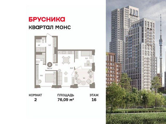 Квартира с кухней-гостиной и двумя спальнями в квартале "МОНС". Особенности планировки: окна на две стороны, второй санузел, тёплая лоджия, лоджия, разнесённые спальни, предчистовая отделка. Квартиру можно купить онлайн. В квартире выполнена отделка "под чистовую". Установлены окна с двойным стеклопакетом, радиаторы с терморегуляторами. На полу цементно-песчаная стяжка. В квартиры заведены кабели для интернета и ТВ. Входная сейф-дверь не требует замены. Организован поквартирный учёт энергоресурсов (водоснабжение, отопление, электричество). Квартал "МОНС" пронизан атмосферой локации, её энергетикой. Она воплощена в общей композиции, чистоте её форм, в графичных и динамичных силуэтных линиях. Пять домов от 2 до 45 этажеи поддерживают идею монументальности и одновременной лёгкости, но при этом у каждого из них сформировался свой характер. "Игра" с разными высотами, текстурой и формой фасадов позволила запустить в квартиры и дворы больше света, сделать пространства между домами проницаемыми и воздушными. Застройщик — компания Брусника. Инфраструктура квартала "МОНС" включает детское образовательное учреждение, магазины, предприятия услуг и офисные помещения. В шаговой доступности находятся: парки ВДНХ и Останкино, школа и детский сад, супермаркеты Перекресток и Вкусвилл, фитнес-клубы, студии растяжки и йоги. Объявление от застройщика. Ипотека, материнский капитал. Обмен — один из способов покупки. Обмен подойдёт, если вы хотите быстро поменять старую квартиру на новую. Получить ипотеку или рассрочку, а также обменять квартиру можно онлайн. Запишитесь на онлайн-презентацию по телефону или на сайте. квартиры в нашей базе: МОН01-Ж3.16.2.