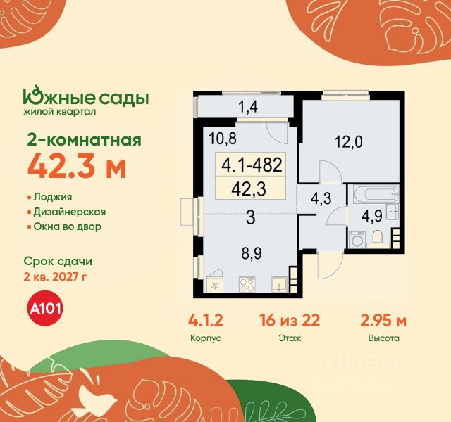 Продается двухкомнатная квартира 111 в новостройке ЖК "Бунинские кварталы" по адресу Москва, ТиНАО, Новомосковский АО, Сосенское С/П, жилой комплекс Бунинские Кварталы, 5.1, район Коммунарка, Новомосковский административный округ, Москва. Общая площадь квартиры - 51.80 кв. м., этаж 16 из 18, секция 2. Тип проекта, по которому построен дом - монолит, компания-застройщик - ООО "А101". Стоимость квартиры - 22283842 Р. Срок сдачи - 2 квартал 2026. ПРЕДЛОЖЕНИЯ ОТ ЗАСТРОЙЩИКА В ФЕВРАЛЕ 2026: Скидки до 10% на все квартиры. Только в офисах продаж до 28 февраля. Ипотека от 13,9 % для всех! На весь срок. "Семейная ипотека" вернулась. Ставка от 3,5 % на весь срок! Без удорожания! Выгодное ипотечное комбо: Ипотека от 2200 р./мес. и от 6 % после рождения ребёнка! Ипотека для всех "Держи пять!" - ставка 5 % на 2 года! *более подробную информацию по скидкам и акциям уточняйте в отделе продаж ЖК "Бунинские кварталы" строится на юго-западе Москвы. Монолитные дома в лаконичной стилистике гармонируют с живописной природой. Из любой точки района удобно добираться до природных объектов, ключевых транспортных узлов, крупных торговых, спортивных, деловых и медицинских центров. Концепция уникального благоустройства района - "Выходи гулять!". Здесь появятся эстрада для районных творческих мероприятий, спортивные и игровые площадки, скейт-парк, дружелюбные пространства для домашних питомцев, благоустроенная набережная Ивановского пруда. В районе формируется собственная развитая инфраструктура: современные школа на 1100 мест и 2 детских сада на 540 малышей, магазины у дома и сетевые супермаркеты, фитнес, кафе, салоны, детские развивающие центры. Крытый каток "Самолёт Арена" - в 10 минутах пешком. За 15 минут можно дойти до действующей станции метро "Потапово". Предусмотрены удобные автомобильные выезды на проспект Куприна и улицу Александры Монаховой. Особенности "Бунинских кварталов": - ст. метро "Потапово" - 15 минут пешком - своя школа и детские сады - безопасные дворы без машин с системой контроля доступа - насыщенная инфраструктура - в шаговой доступности и на первых этажах домов