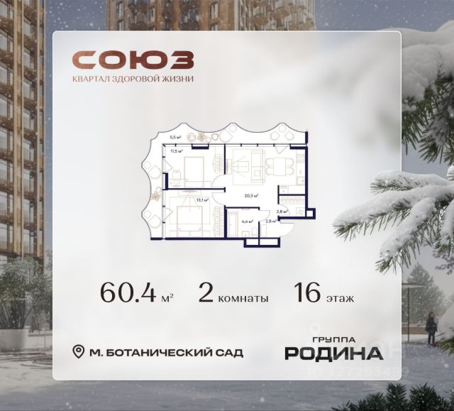 Рассрочка 0% Продаётся 2-комнатная квартира площадью 66.4 м² на 16 этаже в Жилом Комплексе "Союз". Квартал здоровой жизни премиум-класса с рекордным количеством олимпийских видов спорта: - Ледовая арена для хоккея и фигурного катания, - Футбольные поля для тренировок, - Спортивный зал для фехтования, - Бассейн на 6 дорожек, - Центр единоборств, - 4 крытых площадки для настольного тенниса, - 7 теннисных кортов (крытых и открытых), - 4 крытых площадки для сквоша, - Легкоатлетический стадион, - Площадки для баскетбола и волейбола. Уникальные форматы квартир с мастер-спальнями, приватными террасами, балконами, а также пентхаусы с открыточными видами на город. Все квартиры продаются с отделкой Shell&Core и панорамным остеклением. Расположение Пешком: - 2 мин. до парка "Сад Будущего"; - 6 мин. до ст. м. "Ботанический сад"; - 6 мин. до ст. МЦК "Ботанический сад"; - 6 мин. до парка "Леоновская роща"; На автомобиле: - 2 мин. до СВХ (МСД); - 5 мин. до Проспекта Мира; - 10 мин. до ТТК; - 15 мин. до Садового кольца; - 25 мин. до аэропорта "Шереметьево". Благоустройство - собственная спортивная инфраструктура 7 Га; - зона для пикников; - игровые и спортивные площадки для детей всех возрастов; - розарий, а также сосновые, каштановые и дубовые аллеи; - площадки под открытым небом для занятий спортом и йоги; - игровые комнаты для детей; - лаунж-зона для резидентов; - просторная переговорная для деловых встреч; - премиальный ресторан "Шабада" Сосо Павлиашвили с водными арт-объектами на прогулочной аллее, садом ароматных трав и сценой под открытым небом; - кафе, химчистки, аптеки и супермаркеты рядом с домом. Окружение - 8 парков: Сад Будущего, Леоновская роща, Хуамин, Главный ботанический сад РАН, Шереметьевская дубрава, Останкино, парк спорта "Яуза", пойма реки Яуза и музей-усадьба "Останкино"; - 3 ВУЗа: ВГИК, РГСУ, МГПУ; - 12 школ, в том числе: школа 1499 им. И.А. Докукина (топ 100), Brookes Moscow, IThub школа; - 18 детских садов, в том числе билингвальный ALERTUM KIDS; - один из крупнейших океанариумов Европы "Москвариум"; - один из крупнейших в Европе торгово-развлекательных центров "Европолис".