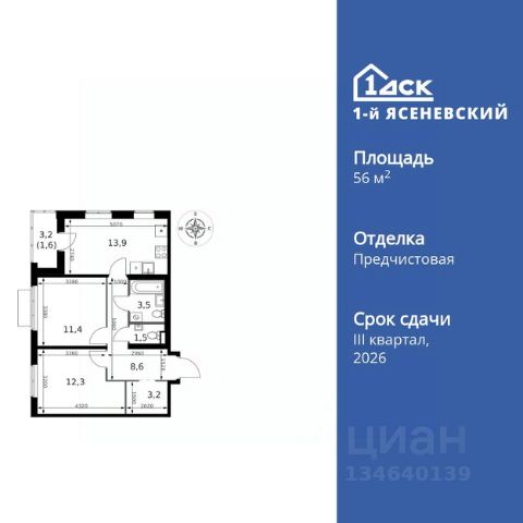 • ✓ В базе Циан 13 2-комнатных квартир на 16 этаже в поселении Мосрентген в Москве