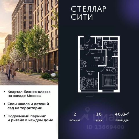Прямая продажа от застройщика. В ЖК Сет продается 2-комнатная квартира площадью 61.33 м², расположенная в корпусе С, на 16 этаже 28 этажного дома. Сет имеет стратегически выгодное расположение в ЗАО, в районе с большой историей и блестящим будущим: между природной зоной долины реки Сетунь и Кутузовским проспектом. В рамках возведения первой очереди предусмотрено три корпуса высотой 18, 45 и 59 этажей. На верхних этажах спроектированы общедоступные смотровые площадки с панорамным обзором на центр столицы. Преимущества проекта: • Функциональные планировочные решения • Контроль проникновения через входную дверь • Система управления освещением и температурой в квартире • Система защиты от протечек с функцией перекрытия воды • Вход в подъезд по биометрическим считывателям Face ID • Скоростные лифты • Двухуровневый подземный охраняемый паркинг на 495 машино-мест Застройка Сет включает в себя не только жилые корпуса, но и инфраструктурные объекты. Все необходимое для повседневного комфорта будет расположено в шаговой доступности: • Фитнес-клуб с бассейном • Ведущая городская школа, детский сад и школа искусств • Центр культуры и досуга • Медицинский центр • Кафе и рестораны Расположение комплекса: Пешком: • Метро "Давыдково" - 17 минут • Парк "Долина реки Сетунь" - 3 минуты • Открытие новых станций метро в шаговой доступности в будущем Инфраструктура: Разнообразить свой день резиденты Веер смогут также проводя больше времени на свежем воздухе. Двор разделен на 4 зоны разных эмоций и действий, которые пересечены и соединены веерными прогулочными маршрутами: • Спортивная площадка устроена в глубине ""Кленовой рощи"" • В ""Чайном домике"" будет создан навес с утеплением для отдыха в любую погоду • Площадки для детей воплотятся в ""Волшебный лес"" с цветами, зеркалами и световым дизайном • ""Центральная площадь"" устроена у водного оазиса живописного пруда. На машине: • "Москва-Сити" - 15 минут • Садовое кольцо - 20 минут • ТЦ "Океания" - 8 минут • ТЦ "Времена года" - 13 минут • Сколково - 12 минут • Гребной канал - 17 минут Компания MR предлагает своим клиентам специальные условия приобретения квартир в рамках программ ипотечного кредитования от банков-партнеров.