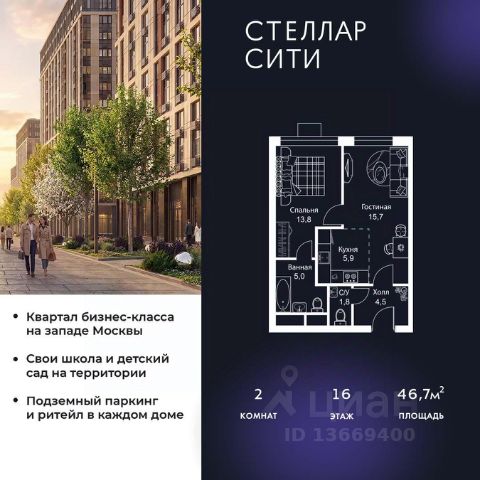 Прямая продажа от застройщика. В ЖК Сет продается 2-комнатная квартира площадью 61.33 м², расположенная в корпусе С, на 16 этаже 28 этажного дома. Сет имеет стратегически выгодное расположение в ЗАО, в районе с большой историей и блестящим будущим: между природной зоной долины реки Сетунь и Кутузовским проспектом. В рамках возведения первой очереди предусмотрено три корпуса высотой 18, 45 и 59 этажей. На верхних этажах спроектированы общедоступные смотровые площадки с панорамным обзором на центр столицы. Преимущества проекта: • Функциональные планировочные решения • Контроль проникновения через входную дверь • Система управления освещением и температурой в квартире • Система защиты от протечек с функцией перекрытия воды • Вход в подъезд по биометрическим считывателям Face ID • Скоростные лифты • Двухуровневый подземный охраняемый паркинг на 495 машино-мест Застройка Сет включает в себя не только жилые корпуса, но и инфраструктурные объекты. Все необходимое для повседневного комфорта будет расположено в шаговой доступности: • Фитнес-клуб с бассейном • Ведущая городская школа, детский сад и школа искусств • Центр культуры и досуга • Медицинский центр • Кафе и рестораны Расположение комплекса: Пешком: • Метро "Давыдково" - 17 минут • Парк "Долина реки Сетунь" - 3 минуты • Открытие новых станций метро в шаговой доступности в будущем Инфраструктура: Разнообразить свой день резиденты Веер смогут также проводя больше времени на свежем воздухе. Двор разделен на 4 зоны разных эмоций и действий, которые пересечены и соединены веерными прогулочными маршрутами: • Спортивная площадка устроена в глубине ""Кленовой рощи"" • В ""Чайном домике"" будет создан навес с утеплением для отдыха в любую погоду • Площадки для детей воплотятся в ""Волшебный лес"" с цветами, зеркалами и световым дизайном • ""Центральная площадь"" устроена у водного оазиса живописного пруда. На машине: • "Москва-Сити" - 15 минут • Садовое кольцо - 20 минут • ТЦ "Океания" - 8 минут • ТЦ "Времена года" - 13 минут • Сколково - 12 минут • Гребной канал - 17 минут Компания MR предлагает своим клиентам специальные условия приобретения квартир в рамках программ ипотечного кредитования от банков-партнеров.