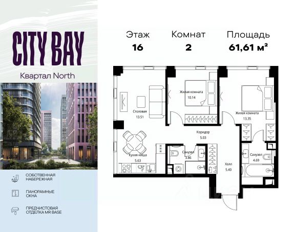 Прямая продажа от застройщика. Продаётся 2-комнатная квартира общей площадью 53.20 м² без отделки в ЖК City Вау, квартале Pacific, на 16-м этаже 18 этажного дома. Концепция жилого комплекса City Вау - настоящий город в городе с отлично развитой инфраструктурой и собственной благоустроенной набережной. На территории жилого комплекса расположено пять кварталов - Atlantic, Pacific, Indian, North, Cliff. Жилой квартал City Вау отличается оригинальной концепцией и выделяется среди других проектов такими характеристиками как: - Архитектура, - Виды из окон, - Природное окружение, вызывая гордость у жителей и восхищение у прохожих. Вся жизнь района Покровское-Стрешнево строится вокруг водных объектов: - Пойма реки Сходни с уникальной экосистемой, - Речка Химка и Химкинское водохранилище, - Москва-река, - Канал имени Москвы. Кругом вода, и местные с удовольствием этим пользуются. А сразу за рекой - центр водного спорта в Строгино с вейк-парком и яхт-клубами. Помимо воды, здесь очень много зелени: - Рядом Сходненский ковш памятник природы, естественный амфитеатр глубиной 40 метров; - Парк при усадьбе Братцево с фруктовым садом; - Дубовая роща "Маяк", - Алешкинский лес; - Лесопарк Покровское-Стрешнево с пляжами и бобрами. Главные транспортные артерии района: - Волоколамское шоссе, - Таганско-Краснопресненская линия метро и МЦД-2. Всего за 20 минут можно добраться до центра на машине или метро, а МЦД связывает ЖК City Вау с северными, восточными и юго-восточными районами. Компания MR предлагает своим клиентам специальные условия приобретения квартир в рамках программ ипотечного кредитования от банков-партнеров.