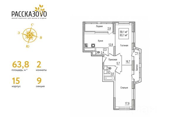 Продается двухкомнатная квартира в городе-парке "Переделкино Ближнее". Общая площадь квартиры - 58,3 кв. м, этаж 16 из 17. Срок сдачи - 3 квартал 2028 года. Тип дома - монолитный. Корпус расположен в новой 13 фазе строительства и состоит из 6 секций с переменной этажностью 12-17 этажей. Все секции с отделкой White Box с возможностью повышения за дополнительную плату до дизайнерской отделки: Classic или Smart+ Около 13 фазы запланировано строительство многоуровневого паркинга на 300 м/мест. 13 фаза имеет уникальное расположение и находится непосредственно на берегу Федосьинского пруда, который является сердцем города-парка "Переделкино Ближнее". Город-парк "Переделкино Ближнее" расположен в 8 км от МКАД по Боровскому шоссе. ТРАНСПОРТНАЯ ДОСТУПНОСТЬ: - 15 минут пешком до станции МЦД-4 "Мичуринец" - 25 минут пешком до станции метро "Рассказовка" Солнцевской линии - 30 минут до центра Москвы - 2026 г. - открытие трассы Солнцево-Бутово-Варшавское шоссе РАЗВИТАЯ СОЦИАЛЬНАЯ ИНФРАСТРУКТУРА: - 7 детских садов, 3 школы - банки, продуктовые магазины, аптеки, фитнес центры, салоны красоты и пр БЛАГОУСТРОЙСТВО: - дворы без машин - игровые зоны и развивающие детские площадки - зоны для созерцательного и медитативного отдыха - зоны для занятий спортом ОСОБЕННОСТИ АРХИТЕКТУРЫ: - высокие потолки от 3,03 м - безбарьерные входные группы - колясочные в каждой входной группе - кладовые помещения расположены на -1 этаже каждой секции - в каждой секции 2 лифта: 1 пассажирский, 1 грузовой - на фасаде предусмотрены корзины для установки кондиционеров АВТОРСКИЙ ДИЗАЙН: Входные группы выполнены по авторскому дизайну, благодаря панорамному остеклению наполнены естественным светом. В каждой входной группе будет располагаться комфортабельная зона ожидания с возможностью зарядить электронные устройства, почтовые ящики, колясочная, акцентные пуфы и столик.