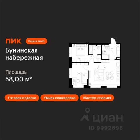 Добрый день! Предлагаем евро 2-комнатную квартиру по переуступке в ЖК "Скандинавия", корпус бизнес-класса.