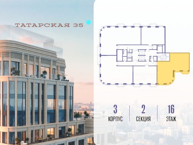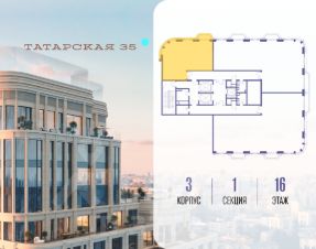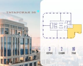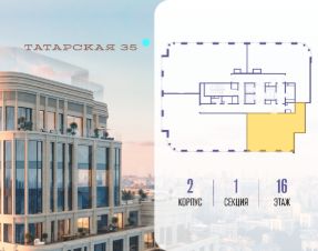 Продается просторная квартира площадью 101.10 м2 в жилом комплексе ТАТАРСКАЯ, 35. Квартира находится в 1 секции корпуса 2. Этаж 16-й из 19. Квартира без чистовой отделки, с просторной кухней 27.00 м2. Жилая площадь 36.70 м2. Высота потолка от 3.50. ТАТАРСКАЯ, 35 - новая архитектурная доминанта Замоскворечья, достопримечательность на фотопанорамах исторического центра Москвы. Элитный дом, созданный для тех, кто умеет смотреть далеко вперед, мыслить масштабно и воплощать собственный сценарий жизни. Вдохновляющие прогулки по променаду набережной, в уютных переулках, в парке "Зарядье", в Михайловском саду и Репинском сквере. Наслаждение высоким искусством в Третьяковской галерее, Доме Музыки, театральном музее им. А.А. Бахрушина, театре на Малой Ордынке. За окнами - Кремль, высотка на Котельнической, панорамы Замоскворечья и острова Балчуг, огни Садового кольца. Собственные спорт-румы, детская, репетиторская, бьюти-пространства, деловое пространство с коворкингом, переговорной и сигарной. Собственный трехуровневый фитнесс-центр с бассейном, тренажерным залом, сауной, хаммамом, массажным кабинетом. Площадь двора - 1,8 га, половина территории покрыта деревьями, кустарниками и лужайками. Дом расположен внутри Садового кольца - отсюда в считанные минуты можно добраться до важнейших мест столицы: достопримечательностей и парков, театров и ресторанов, деловых и административных центров. 7 минут до Кремля на автомобиле, 15 минут до Третьяковской галереи и 8 минут до Садового кольца пешком. Планировочные решения и визуализации предварительны, возможны изменения.