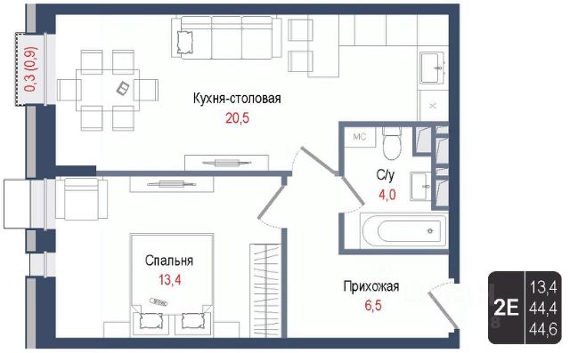 Продаётся 2-комнатная квартира в строящемся доме (Корпус 3), срок сдачи: II-кв. 2028, общей площадью 43.9 кв.м., на 2 этаже. ЖК "Киноквартал" , МО, г. Королев, мкр. Первомайский, ул. Солнечная, д. 2