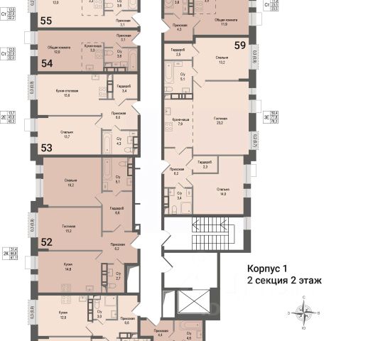 Продаётся 2-комнатная квартира в строящемся доме (Корпус 3), срок сдачи: II-кв. 2028, общей площадью 48.4 кв.м., на 2 этаже. ЖК "Киноквартал" , МО, г. Королев, мкр. Первомайский, ул. Солнечная, д. 2