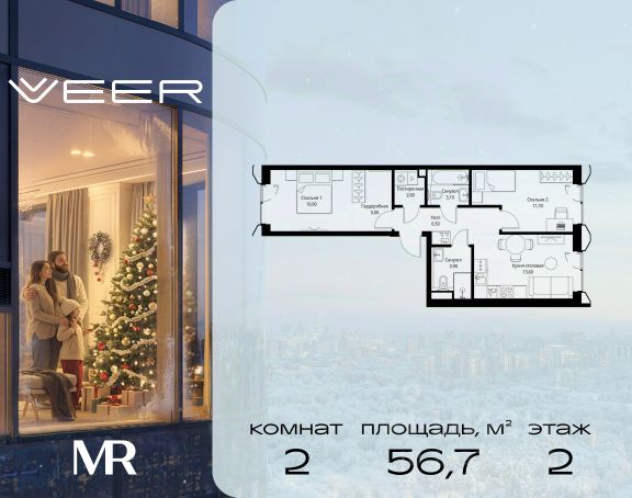 Прямая продажа от застройщика. Продаётся 2-комнатная квартира общей площадью 51.60 м² без отделки в ЖК VEER на 2-м этаже 59 этажного дома. Жилой комплекс бизнес-класса VEER от компании MR — это футуристичный мультиквартал, расположенный в престижной локации на западе Москвы. Благодаря переменной высоте башен — двух 22-этажных, 46-этажной и двух 59-этажных — возникает динамичность в силуэте комплекса, а его яркий образ вносит разноплановость в архитектурный пейзаж района. Расположение и транспортная доступность: • VEER удобно расположен в непосредственной близости от Кутузовского проспекта, обеспечивая быстрый доступ к центральным районам Москвы • Комплекс находится непосредственно напротив самого большого природного заказника в Москве - парка "Долина реки Сетунь", а за семь минут можно доехать до памятника садово-паркового искусства, Троекуровского леса. • Всего в 15 минутах - центр города, самая престижная бизнес-школа управления России "Сколково", дом творчества "Переделкино". • 18 минут пешком до м. "Давыдково" • Открытие новых станций метро в шаговой доступности в будущем Инфраструктура: Разнообразить свой день резиденты VEER смогут также проводя больше времени на свежем воздухе. Двор разделен на 4 зоны разных эмоций и действий, которые пересечены и соединены веерными прогулочными маршрутами: • Спортивная площадка устроена в глубине "Кленовой рощи" • В "Чайном домике" будет создан навес с утеплением для отдыха в любую погоду • Площадки для детей воплотятся в "Волшебный лес" с цветами, зеркалами и световым дизайном • "Центральная площадь" устроена у водного оазиса живописного пруда. Компания MR предлагает своим клиентам специальные условия приобретения квартир в рамках программ ипотечного кредитования от банков-партнеров.