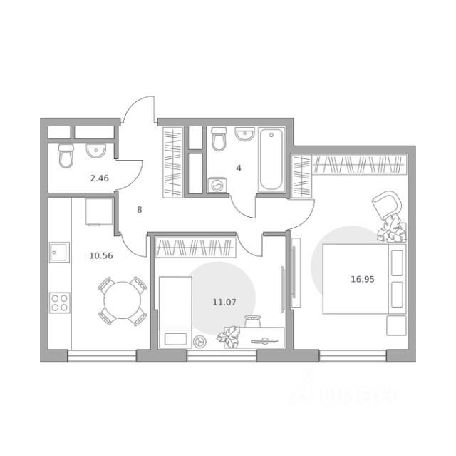 Продаётся 2-комнатная квартира 13, площадью 55,40 м², на 2 этаже в ЖК "Притяжение Сити" корпус 8. Стоимость — от 11415097 руб. Квартира без отделки, планировка односторонняя, окна во двор.