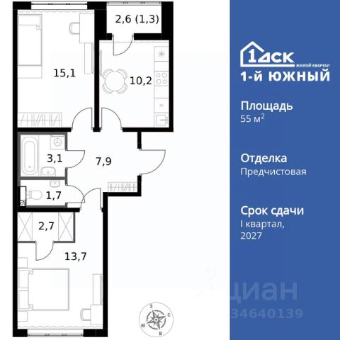 Прямая продажа от застройщика! Жилой Комплекс класса Комфорт Плюс. Продаётся 2-к квартира номер 441 общей площадью 55.7 кв.м. на 2-м этаже 24 этажного здания. Отделка Whitebox. Особенности квартиры: - МЦД-5 в пешей доступности - Квартал с южным садом - Свои 3 детских сада и 2 большие школы - Мастер-зона с гардеробной. Просторное место для отдыха и удобного хранения вещей. - Распашная планировка - отличное сочетание удобства и свободы. - Раздельный санузел - больше удобства для всех членов семьи. - Можно оборудовать рабочее место - комфорт для работы и учёбы. - Линейная кухня - функциональность и практичность в одном решении. - Гардеробная - удобство для хранения и организации вещей. - Лоджия - уютное место для отдыха и тишины. Квартира с предчистовой отделкой (White box). Вам не придется заниматься черновыми и трудоёмкими работы, а чистовую отделку и дизайн - сделайте на свой вкус. Информация о комплексе: Одно из преимуществ проектов 1- ДСК большие застекленные лоджии. Другое преимущество честный евро-формат. Во всем проекте предусмотрена система Умный дом. В состав устанавливаемого пакета устройств входит: WiFi реле для управления группами потребителей, беспроводной кран перекрытия с эл. приводом, беспроводной сенсор протечки, Яндекс Станция Мини. Его расположение можно назвать удачным за счет транспортной доступности и близости к природным объектам. По соседству лес, а в каждом дворе плодовые деревья. Весной квартал окутывает бело-розовое облако: это цветут яблони, груши, сливы. К августу в воздух наполняется ароматом созревших плодов. Зимой среди покрытых инеем деревьев протянулась лыжня. Транспортная доступность: - Общественный транспорт: Действующая ж/д станция Булатниково (в перспективе будущая МДЦ D5) в пешей доступности, всего 10-12 минут. - Личный автотранспорт: Удобный выезд на трассу М4-Дон в сторону Москвы и области 850 м, до МКАД - 1 км Внутренняя инфраструктура: Красивые продуманные подъезды - еще одно преимущество проекта 1-й Южный. Вход в сквозные подъезды есть и с улицы, и со двора. Благодаря сплошному остеклению в них всегда светло и уютно. Подъезды расположены на уровне земли, поэтому и молодым родителям с коляской, и жильцам с ограниченными возможностями вход и выход неудобств не доставят. В помещении предусмотрено место под стойку ресепшен с выводом инженерных сетей. Если жильцы решат на общем собрании, что необходим охранник или консьерж, организовать для них рабочее место можно быстро и с минимальными затратами. В подъездах предусмотрены уборные для детей и взрослых. Колясочные в каждом подъезде позволяют поддерживать порядок и чистоту на этажах. На случай прогулки с четвероногим питомцем в непогоду в подъездах устроены лапомойки. Во дворах и на общественных территориях 1-ого Южного столько всего интересного для юных обитателей. Собственные 3 детских сада и 2 больших школы буквально под окнами Изюминка проекта - пешеходный бульвар-дендрарий, он идеален для семейных прогулок. По с