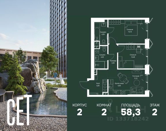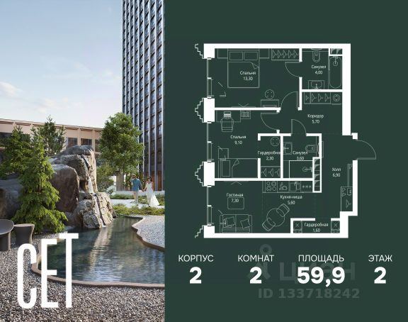 Старт продаж новой очереди! Продаётся 2-комнатная квартира общей площадью 57.08 м² без отделки в ЖК Веер на 2-м этаже 25 этажного дома. Веер.2 — вторая очередь футуристичного квартала бизнес-класса Веер. Это новая экосистема в престижном Западном округе Москвы, поражающая масштабностью внутренней инфраструктуры. ЖК находится всего в 5 минутах от Кутузовского проспекта и в 15 минутах от Сколково. Ансамбль из четырех стеклянных башен с доминантой в 237 метров разработан по принципу современного урбанизма и выражен в лаконичных объемах — параллелепипедах со сглаженными углами, которые придают зданиям утонченный вид. Расположение и транспортная доступность: • Образовательный комплекс в составе топовой школы, состоящий из двух зданий: основное на 1500 школьных и 450 дошкольных мест, отдельное здание детского сада на 300 мест. • Парк "Долина реки Сетунь" площадью более 700 гектаров • Рядом МГУ, МГИМО, РАНХиГС и Академия ФСБ • 15 минут по Кутузовскому проспекту до ужина в центре с видом на Москву-реку • 18 минут пешком до м. "Давыдково" • Открытие новых станций метро в шаговой доступности в будущем Инфраструктура: Двор в Веер.2 — это ассиметричные холмы, каменные "лабиринты", зеленые ковры и хвойные островки с единой живой экосистемой. Здесь есть все: • Павильон умиротворения Место отдыха под навесом в спокойной части двора, окруженное деревьями. • Активная тропа Тактильная дорога из камней разного диаметра для расслабляющих прогулок. • Бизнес-гарден Оборудованное пространство для работы на свежем воздухе со столом и встроенными розетками. • Детская площадка Двухуровневая площадка "Ботаника" с песочницей, переговорной трубой и горкой "Дружба". Компания MR предлагает своим клиентам специальные условия приобретения квартир в рамках программ ипотечного кредитования от банков-партнеров.