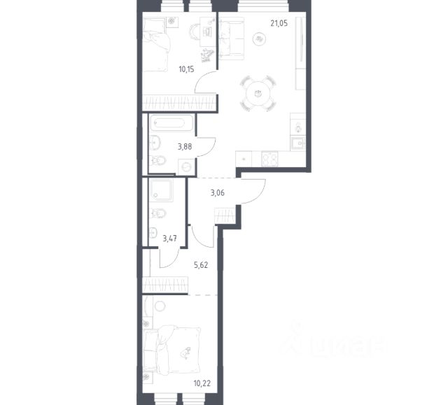 Строим кварталы для жизни с заботой о будущем. Предлагается 2-комнатная квартира комфорт-класса площадью 57,45 кв.м в корпусе 5 на 2-м этаже, в жилом комплексе "Квартал Ивакино". Позаботились о вашем времени, поэтому квартиры доступны с готовой отделкой. Выполнили ремонт всех помещений и создали интерьеры с продуманными деталями. В жилых комнатах поклеены обои горячего тиснения, на полу уложен ламинат с текстурой дуба и фаской. Ванные комнаты в отделке из керамогранита, в них установлена хромированная сантехника. Во всех помещениях гладкие матовые двери с хромированной фурнитурой и белые натяжные матовые потолки. Остается только выбрать, какую картину повесить над кроватью и где поставить лежанку для собаки. Кроме того, вы можете быстро выбрать мебель и декор на нашем маркетплейсе — без очередей и длинных поездок в магазин. Вариант без отделки — для тех, кто хочет претворить в жизнь собственные дизайнерские решения. Приобрести квартиру возможно по специальным акциям от застройщика, с текущими условиями акций можно ознакомиться в блоке "Акций". Цена динамическая и может отличаться, уточняйте актуальность у застройщика. "Квартал Ивакино" — уютный квартал для жизни в окружении водоемов. До МКАДа 15 минут, до станций МЦД-1 и МЦД-3 — 15 минут, метро "Ховрино" и "Беломорская" в 20 минутах. Всего 5 минут — и вы на набережной канала им. Москвы. На территории комплекса запланированы — 2 школы, 3 детских сада (один уже сдан), спортивный центр и поликлиника. Во дворе-парке без машин есть спортивные и детские площадки. Квартиры с готовой отделкой или без.