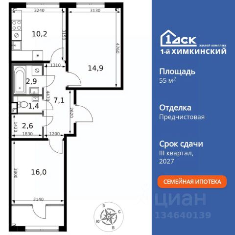 БЕЗ ПЕРВОНАЧАЛЬНОГО ВЗНОСА! • ИПОТЕКА 10% ДЛЯ ВСЕХ БЕЗ НАЦЕНОК • ДОСТУПНО ПО СЕМЕЙНОЙ ИПОТЕКЕ Прямая продажа от застройщика! Жилой Комплекс класса Комфорт. Продаётся 2-к квартира номер 19 общей площадью 49.5 кв.м. на 2-м этаже 10 этажного здания. Без отделки. Цена с учётом скидки. Особенности квартиры: - Линейная планировка - максимальная функциональность и удобство. - Раздельный санузел - больше удобства для всех членов семьи. - Евроформат - просторное и удобное жилье с отличной планировкой. - Линейная кухня - функциональность и практичность в одном решении. - Гардеробная - удобство для хранения и организации вещей. - Ниша под шкаф - компактное и удобное место для вещей. - Лоджия - уютное место для отдыха и тишины. Информация о комплексе: Квартал класса комфорт плюс, где современное городское пространство граничит с удивительной природой вокруг. 1-й Химкинский расположен на территории в 102 га и органично вписан в природное окружение Химкинского леса и канала им. Москвы. В проекте предусмотрена богатая коммерческая инфраструктура с собственным торговым центром, общеобразовательные учреждения и социальные объекты. Изюминкой жилого комплекса будут спортивно-оздоровительный комплекс с термами и SPA и семейный парк развлечений. Транспортная доступность: ЖК "1-й Химкинский" дает возможность выбрать любой способ передвижения как до города, так и до самых разных объектов, которые могут представлять интерес для его жителей. Не важно, какой способ передвижения вы предпочитаете, успевать всегда и везде можно вне зависимости от выбора транспорта. - 8 мин. пешком (800 м) до остановки "Золотая Арка" -10 мин пешком (1 км) до остановки "Поворот на Ивакино" Внутренняя инфраструктура: - Безопасность: закрытые дворы без машин, безбарьерная среда и сквозные подъезды, камеры на детских площадках с возможностью трансляции на смартфоне - Идеальный отдых в кругу семьи: семейный парк развлечений на территории, торговый центр (2-х этажный) общей площадью более 8 тыс. кв. м с фудкортом - Образование: 3 детских сада и современная муниципальная школа на 2450 мест - Спортивная среда: закольцованный веломаршрут с навигацией, спортивный комплекс с термами, закрытый тренажерный зал и зоны ворк-аута - Социальные объекты: поликлиника со станцией скорой помощи, пожарное депо - Подземный паркинг и кладовые помещения на -1 этаже, станция техобслуживания и автомойка на территории