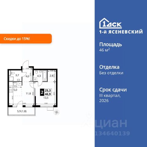 Предчистовая отделка в подарок! Пешая доступность от метро и московская прописка! Продается уютная 2-комн. квартира площадью 56,6 кв.м на 2 этаже 17 этажного жилого комплекса бизнес-класса Foreville от 3S Group. Общая площадь: 56,6 кв.м., жилая: 37,5 кв.м., площадь кухни-гостиной: 16,6 кв.м., высота потолков: 2,72 м., окна выходят на улицу. Квартира предлагается без отделки, что идеально подходит для воплощения собственного дизайнерского решения. Также доступна опция предчистовой отделки, стоимость которой включается в общую цену квартиры. О проекте: Пространство Комплекс располагает крупнейшим приватным двор-парком в Новой Москве площадью 1,2 Га, предлагая жителям огромное пространство для отдыха, спорта и игр на свежем воздухе. Природный ландшафт Внутренний лесопарк с более чем 183 взрослыми деревьями и 10 320 цветущими кустарниками создает уникальную природную атмосферу для каждого времени года. Игровые и спортивные зоны Обширные площадки с безопасным покрытием, специализированные зоны для детей разных возрастных групп и взрослых, включая воркаут и настольный теннис, способствуют активному и здоровому образу жизни. Экологичность и долговечность Использование натуральных материалов, таких как лиственница, и крупноформатной бетонной плитки для покрытия, подчеркивает стремление проекта к экологичности и устойчивости. Безопасность и уединение Внутренний двор без машин обеспечивает безопасность для детей и спокойствие для взрослых. Территория огорожена и находится под круглосуточным видеонаблюдением. Сохранение времени Благодаря превосходной транспортной доступности и близости к новой станции метро Корниловская, Foreville позволяет жителям экономить время для семьи и отдыха на природе, минимизируя необходимость длительных поездок. Foreville не просто жилье, а целая экосистема для комфортной и гармоничной жизни на свежем воздухе, совмещая преимущества городской инфраструктуры и непосредственную близость к природе.