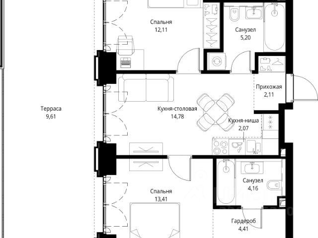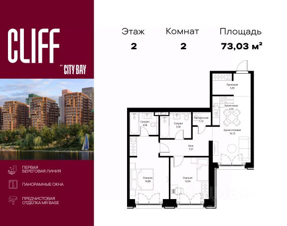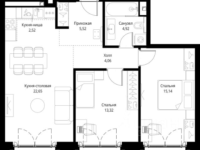 В продаже — двухкомнатная квартира с чистовой отделкой, общей площадью 83,95 кв. м. Квартира расположена на втором этаже одинадцатиэтажной секции дома класса Адвансд в новом районе СберСити, который строит Сбер. Дом находится на первой береговой линии Москвы-реки. Дом возводится по технологии монолитного строительства. Отделка фасадов выполнена из природного камня, глазурованной плитки и алюминия. В квартире проведены работы по улучшению шумоизоляции, установлены двухкамерные стеклопакеты с низкоэмиссионными стёклами, минимизирующими теплопотери. Высота потолков — 3 м, в санузлах — тёплый пол. В доме расположены: • уютное лобби, • лапомойка, • общественная терраса, • коворкинг для жителей, • собственная спортивная студия, • колясочная и велосипедная комната на первом этаже, • детская игровая комната, • подземный паркинг. СберСити — это новый жилой и деловой район на западе Москвы, в одном из самых экологически чистых и престижных мест столицы. Это первая в России и крупнейшая в мире инновационная городская среда, созданная по международным стандартам зелёного проектирования. Здесь внедряются решения в области энергоснабжения, вакуумного мусороудаления, тестирования зелёных технологий, а в дальнейшем — системы искусственного интеллекта для управления домами и городской инфраструктурой. Строительство проекта началось в 2021 году, заселение первых корпусов — с лета 2024-го. Общая площадь территории — 461 га, из них более 2,5 млн кв. м жилья и около 833 тыс. кв. м офисных пространств. Будет построено 7 школ, 13 детских садов и 2 поликлиники. В СберСити будут жить 65 тыс. человек и работать 70 тыс. Развитием территории занимается АО "Рублёво-Архангельское", входящее в группу Сбер. СберСити — место, где хочется жить, работать и растить детей. Переезжайте в СберСити!