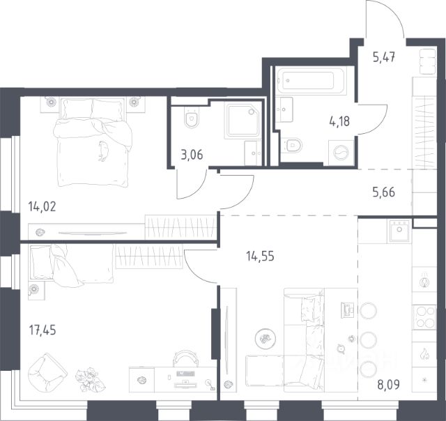 Продается двухкомнатная квартира в девятиэтажном монолитном доме жилого комплекса "Резиденции Сколково". Общая площадь квартиры - 80,8 кв. м, этаж 2 из 9. Срок сдачи - 3 квартал 2026 года. ЖК "Резиденции Сколково" - это современный проект бизнес-класса, расположенный в престижном районе Сколково, у западной границы Москвы. Транспортная доступность: - 0 км от МКАД - 10 минут на личном авто до метро "Озёрная" Солнцевской линии - 15 минут на личном авто до Москва-Сити по Кутузовскому проспекту - 20 минут на личном авто до центра по проспекту Генерала Дорохова - 24 минут на личном авто до центра по Мичуринскому проспекту Безопасность: Огороженная, закрытая территория, круглосуточное видеонаблюдение, контроль доступа во внутренний двор. Благоустройство и инфраструктура: Масштабное озеленение в концепции "двора-парка" и множество площадок отдыха для взрослых и детей. В 5 минутах ходьбы расположен Мещерский лесопарк. В жилом комплексе уже построены и работают 2 муниципальных детских сада с бассейном, планируется строительство 1 школы. В непосредственной близости - частные и муниципальные детские сады и школы, кафе и рестораны, продуктовые магазины, салоны красоты и другие готовые объекты городской инфраструктуры. Авторская архитектура: Авторская концепция архитектуры, входные группы на уровне земли. Для удобства жителей на первых этажах предусмотрены помещения для колясок и на -1 этажах для хранения велосипедов.
