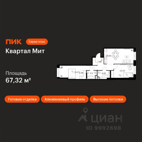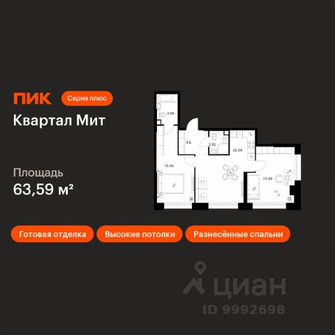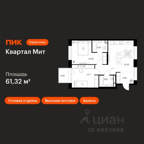 Продаётся 2-комн. квартира площадью 59,51 кв.м на 2 этаже 32 этажного дома (Корпус 3.4, Секция 4) проекта ПИК Квартал Мит. Светлый просторный подъезд на уровне земли, функциональная планировка, большие окна, c отделкой. "Квартал Мит" строится в экологически чистом районе Митино, где по соседству расположен большой лесопарк, а с двух сторон протекают реки Сходня и Журавка. Для семей с детьми здесь появится школа и два детских сада. В 20 минутах пешком находится станция метро "Пятницкое шоссе", а за 10 минут на автомобиле можно доехать до МКАД. Архитектура от архитектурного бюро "Слава+" Концепция квартала сочетает эстетику и функциональность. Башня-доминанта цвета красной охры и разновысотные корпуса терракотового, белого и графитового оттенков формируют узнаваемый силуэт современного городского пространства. Просторные террасы, разнообразные балконы и окна в пол придают облику динамичность и дарят квартирам уютные места для отдыха. Первые этажи с панорамными окнами создают сцену для яркой городской жизни. Здесь появятся пространства для прогулок, летние террасы, рестораны и коммерческие помещения. Комфорт "Серии плюс". При входе в дом жителей встретят светлые просторные лобби с высокими потолками — попасть сюда можно как со стороны улицы, так и со двора. В лобби будет зона ожидания, велосипедная и колясочная. Быстро и с комфортом подняться на нужный этаж помогут бесшумные скоростные лифты. На подземном этаже появится паркинг и индивидуальные кладовые, где удобно хранить сезонные вещи. Артикул 1034635 (Застройщик АО СЗ "ПФК")